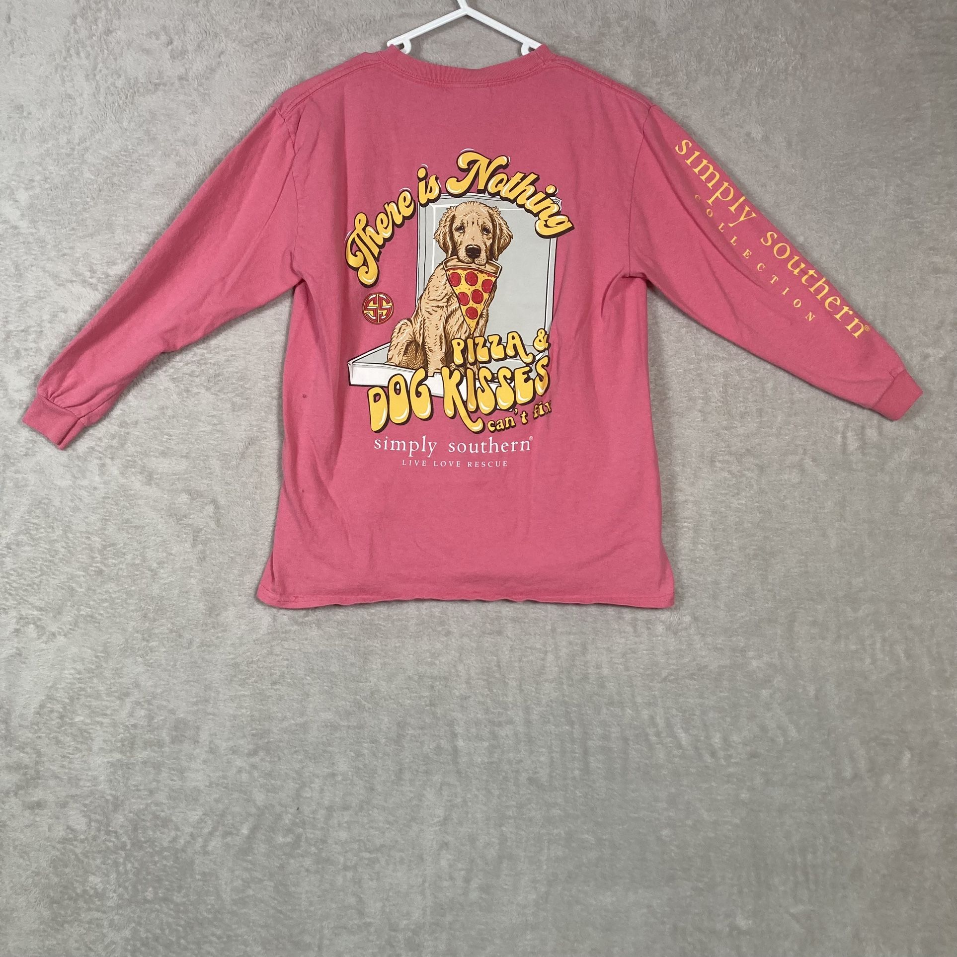 Simply Southern Pizza And Dog Kisses Long Sleeve Logo Shirt Size YOUTH Medium Youth kids girls children child Size Medium “There is Nothing Pizza and Dog Kisses Can’t Fix” * Color: Punch * 100% Cotton * Simply Southern Shirts * Long sleeves, crew neckline * Simply Southern pizza and dog graphic that reads “There is Nothing Pizza and Dog Kisses Can’t Fix” * Simply Southern logo graphics on front, back, and right sleeve * Machine wash cold, tumble dry low Good preowned condition with light signs of wear from a smoke free 1 =^·^= home. Item has been properly cleaned to manufacturers standards. See pics for more details. Fast Shipping! Same or next day. I am open to all offers.