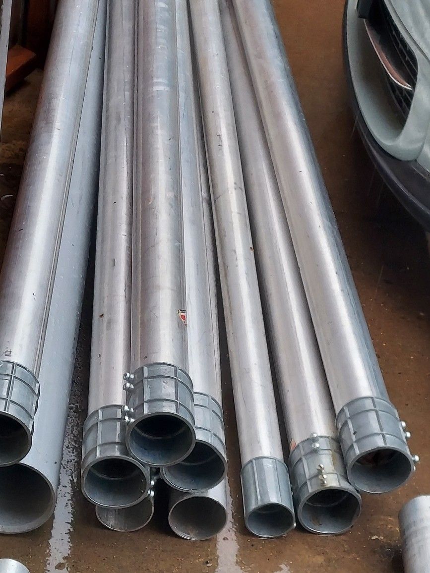 Approximately 45'of 2 1/2" (four 10',one 4.5') Four. 2 1/2" couplings One. 2 1/2" 30° elbow One. 2 1/2" 90° elbow *elbows are not aluminum