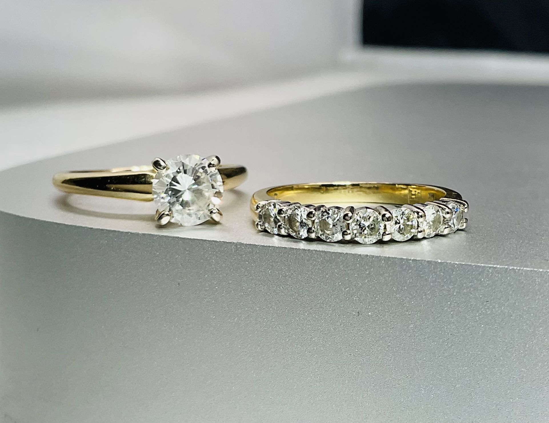 14k YG 1.7CT DIAMOND ENGAGEMENT WEDDING RING SET