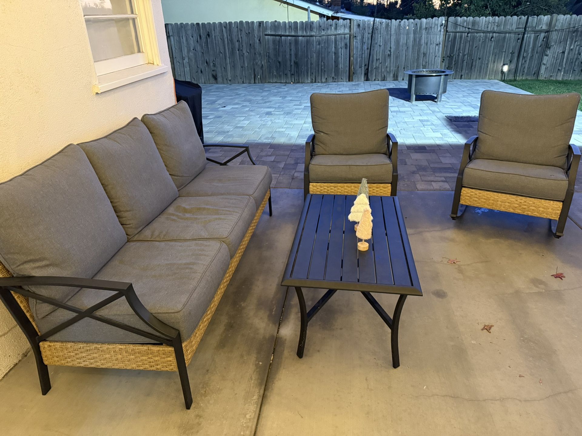 Like new, purchased not too long ago for $900. Selling because it doesn’t match other outdoor furniture. Comes w/ two tables. $450 OBO