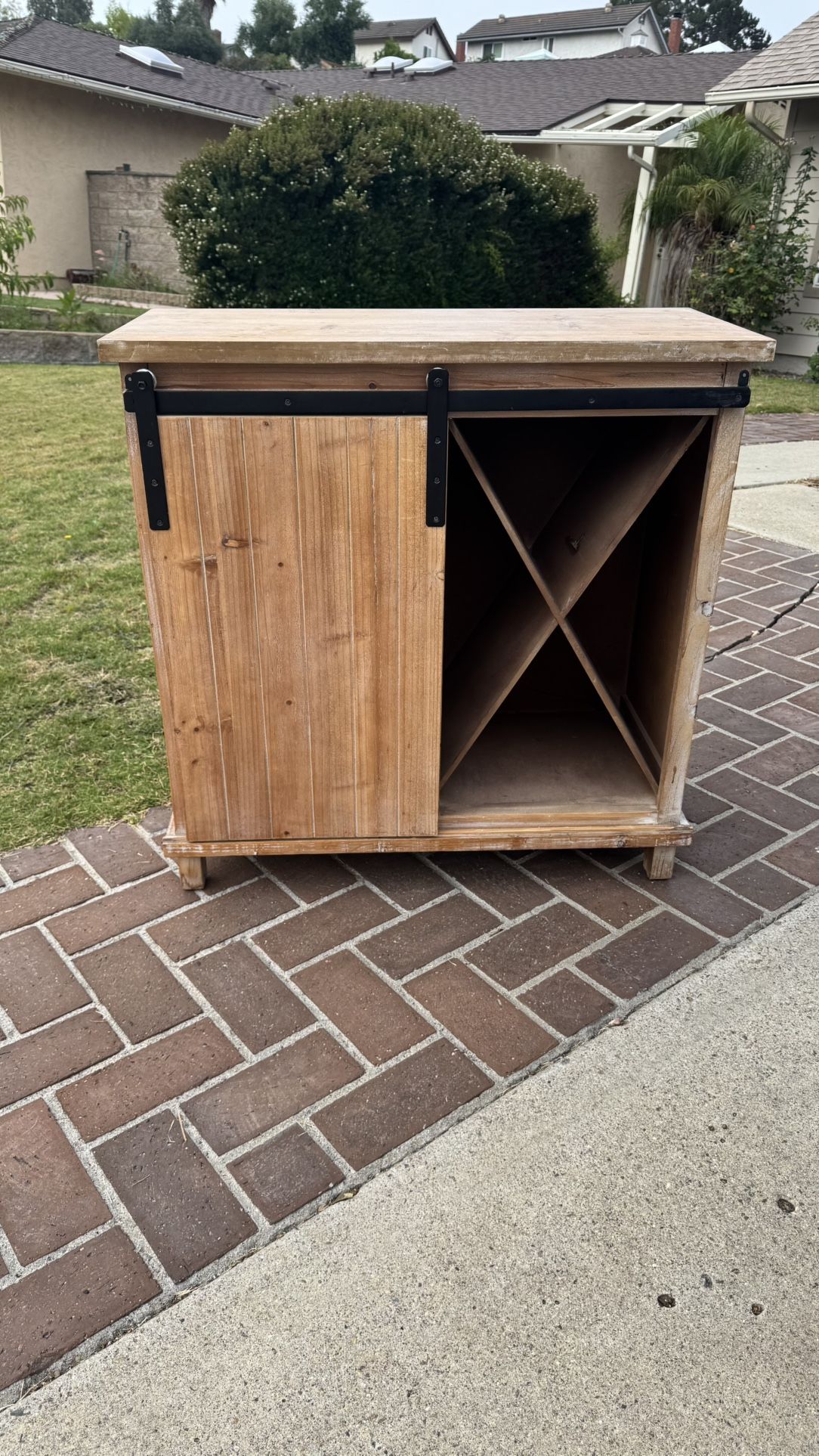 Liquor cabinet - 2 shelves for liquor bottles, wine rack, and sliding door. 32w x 32h x 15d