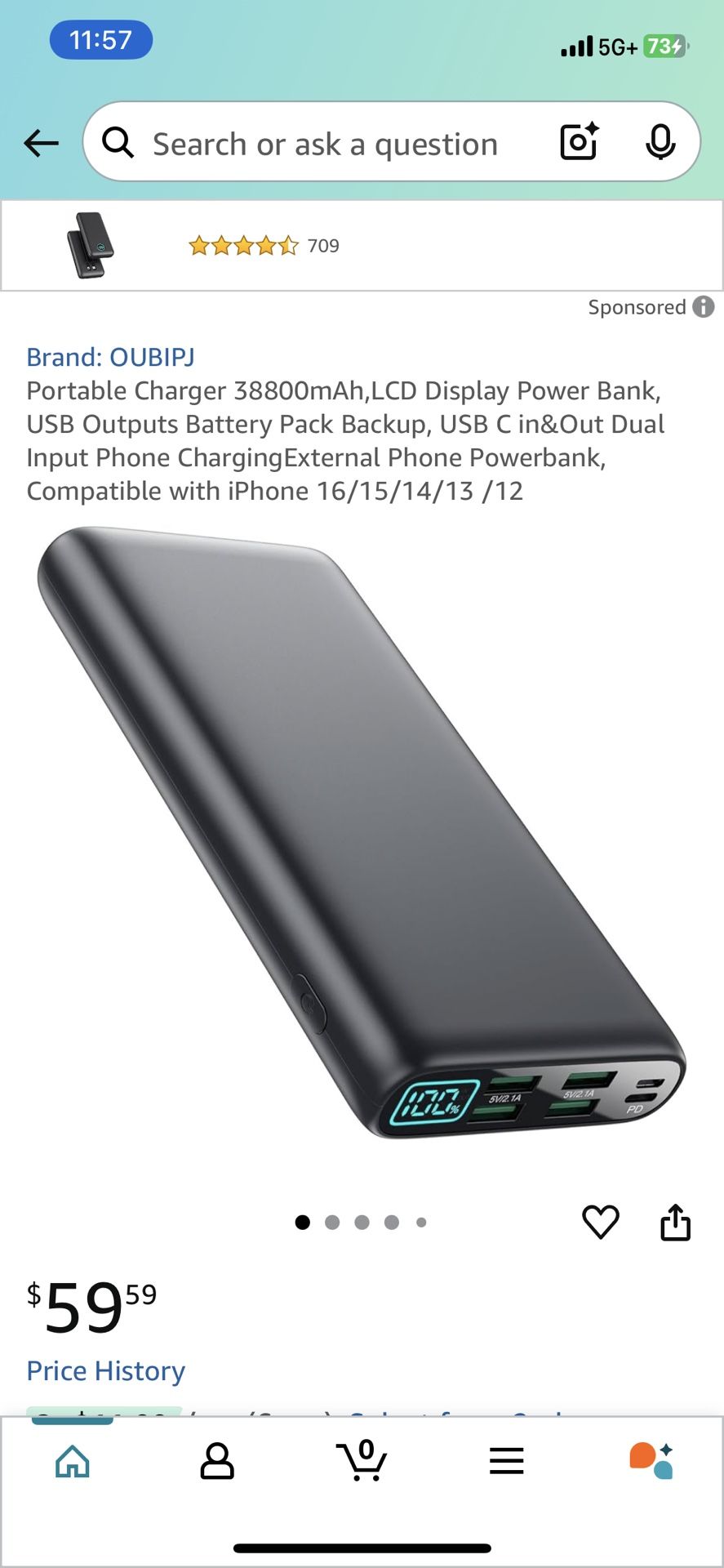 New Portable Charger 38800mAh,LCD Display Power Bank, USB Outputs Battery Pack Backup, USB C in&Out Dual Input Phone ChargingExternal Phone Powerbank, Compatible with iPhone 16/15/14/13 /12p LP