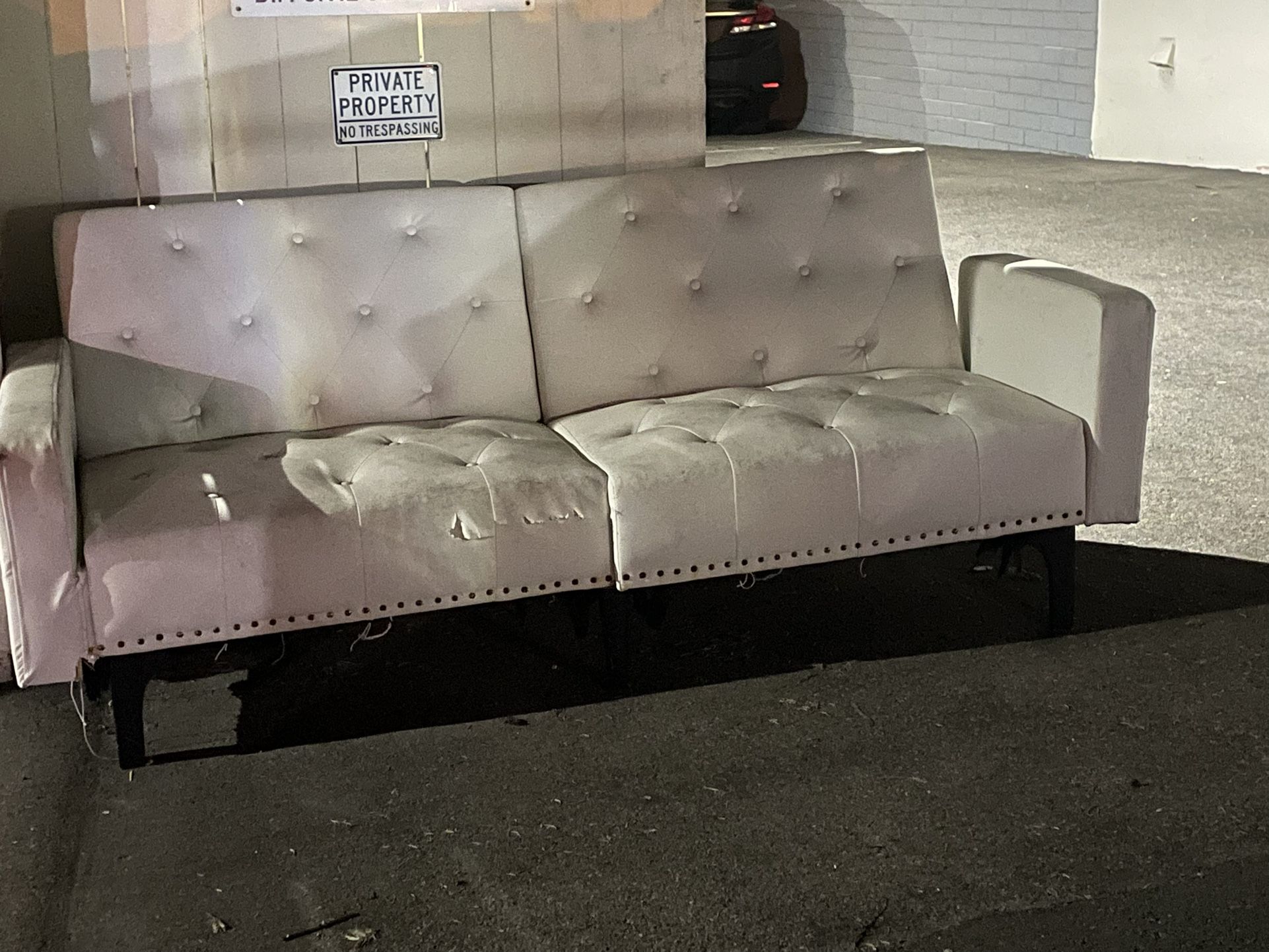 worn futon couch but free for pickup in alley in Dana Point