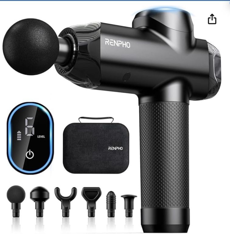 RENPHO Massage Gun Deep Tissue with 12mm Amplitude, Percussion Muscle Massage Gun, Portable Electric Handheld Massager Gun, LED Touch Display Carry Case Power