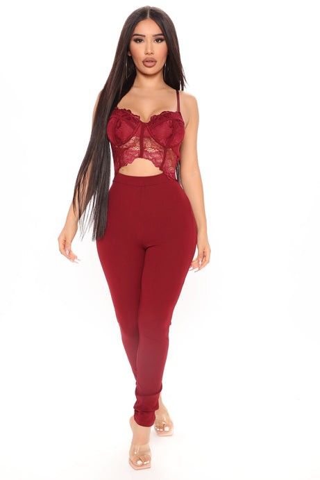 Fashion Nova Burgundy Lace Bodysuit New