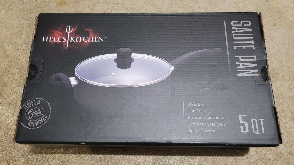 Brand new in the box! Hells Kitchen 5 Quart Saute pan with top