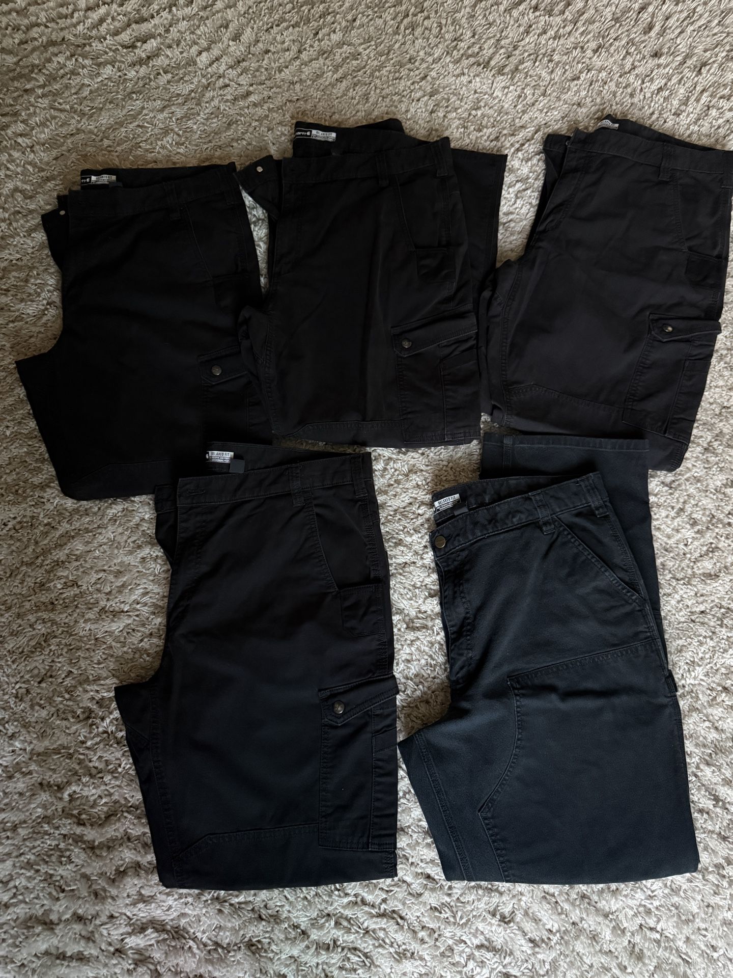 $35 each I have total of 5 Carhartt men’s work jeans. All black color In new condition 3 pairs are size 40x32 1 pair size 44x32 1 pair size 42x32