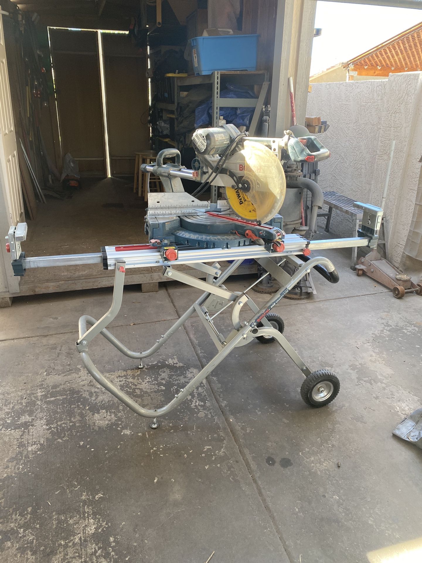 Bosch 4412 , 12” miter saw and T4b gravity rise stand.
