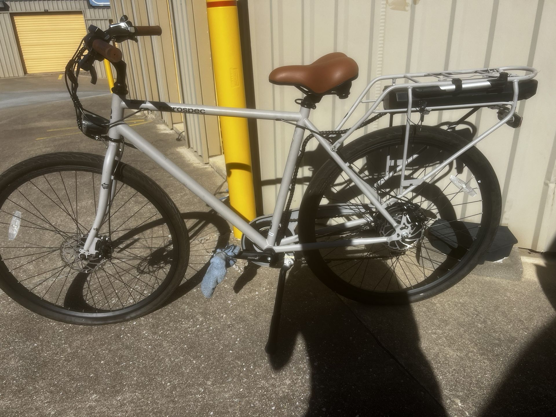 Retrospec city E-Bike, 20 mph too assisted speed, up to 38 mile range, 36V/360Wh Li-ion Battery, with front light. Used with some wear