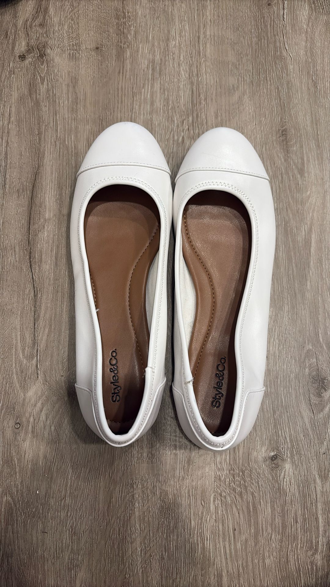 White Style & Co Women’s Shoes worn once. Size 8. Wrong size so selling. Shoot me your best offer. Price negotiable. Bought for $40. Similar to Alfani ballet shoes.