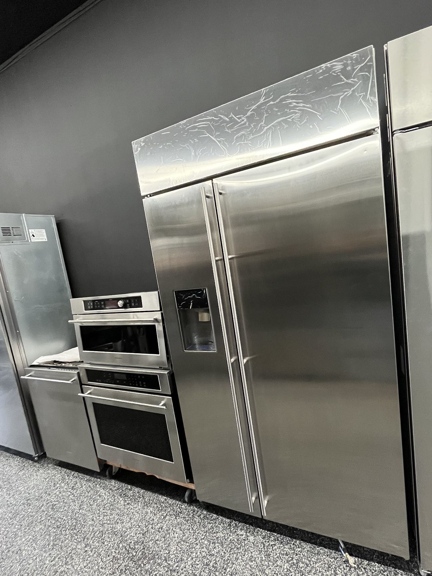 Monogram 3 piece bundle - 42” side by side built in refrigerator ice and water - 30” microwave oven combo electric can be separated - 24” dishwasher Model #s ZISS420DNSS ZDT915SSJSS ZET9050SH4SS ZSC1201J4SS Located in California Pay once units arrive at your home