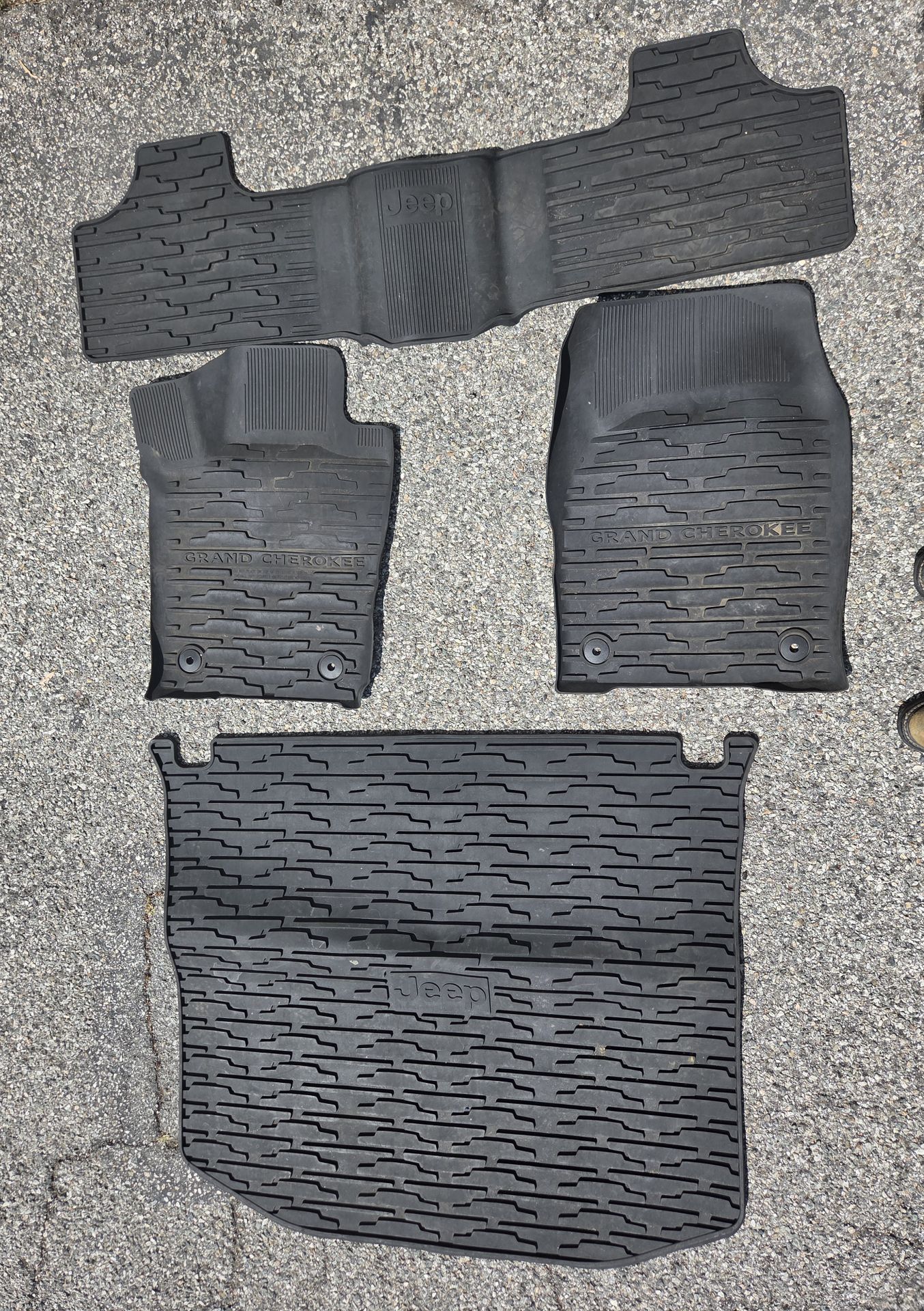 Used rubber mat set. Front, Back and Cargo I believe 2017-2020 ? Not sure? They came from my 2018 Grand Cherokee. See pictures