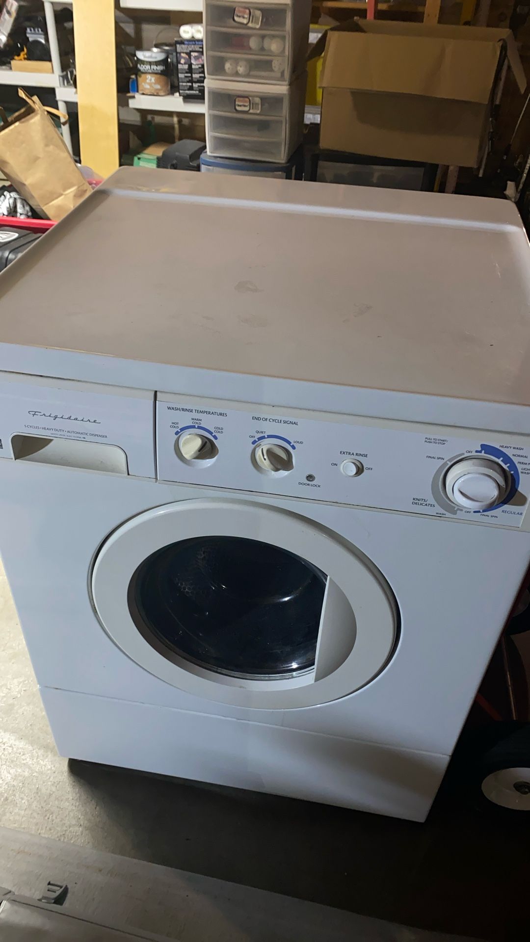 It’s an older model but it works - upgraded our set - sold the dryer and now selling the washer - priced to move !! Frigidaire front loader model number in photo LTF530FSO 27w x 25deep x 36high If this ad is up it is available -