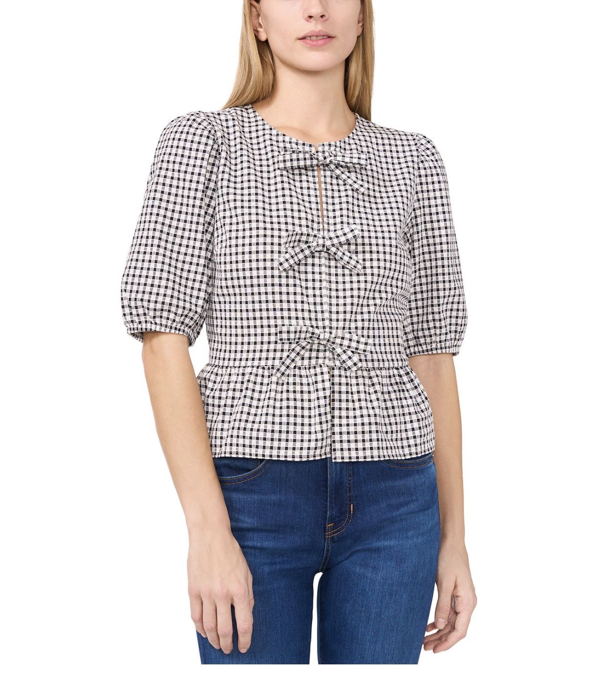 Cece Women's Gingham Bow-Front Peplum Top 6