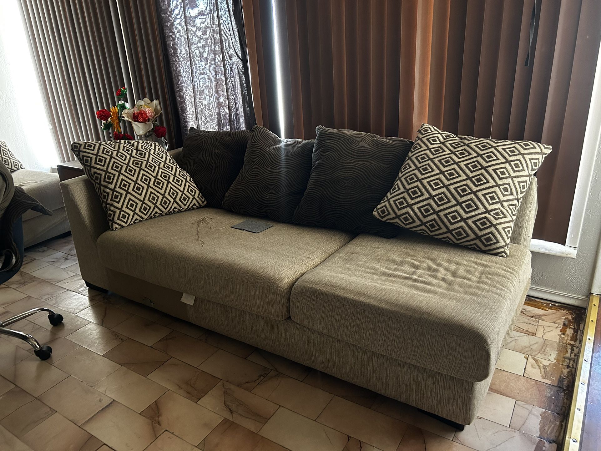 2 couches and one like bed couch $150 FYI Cat and dog have been around A bit heavy must be picked up and bring your own help Where the patches are at have thorns but does not affect its use $150 obo Located Northloop and Lomaland