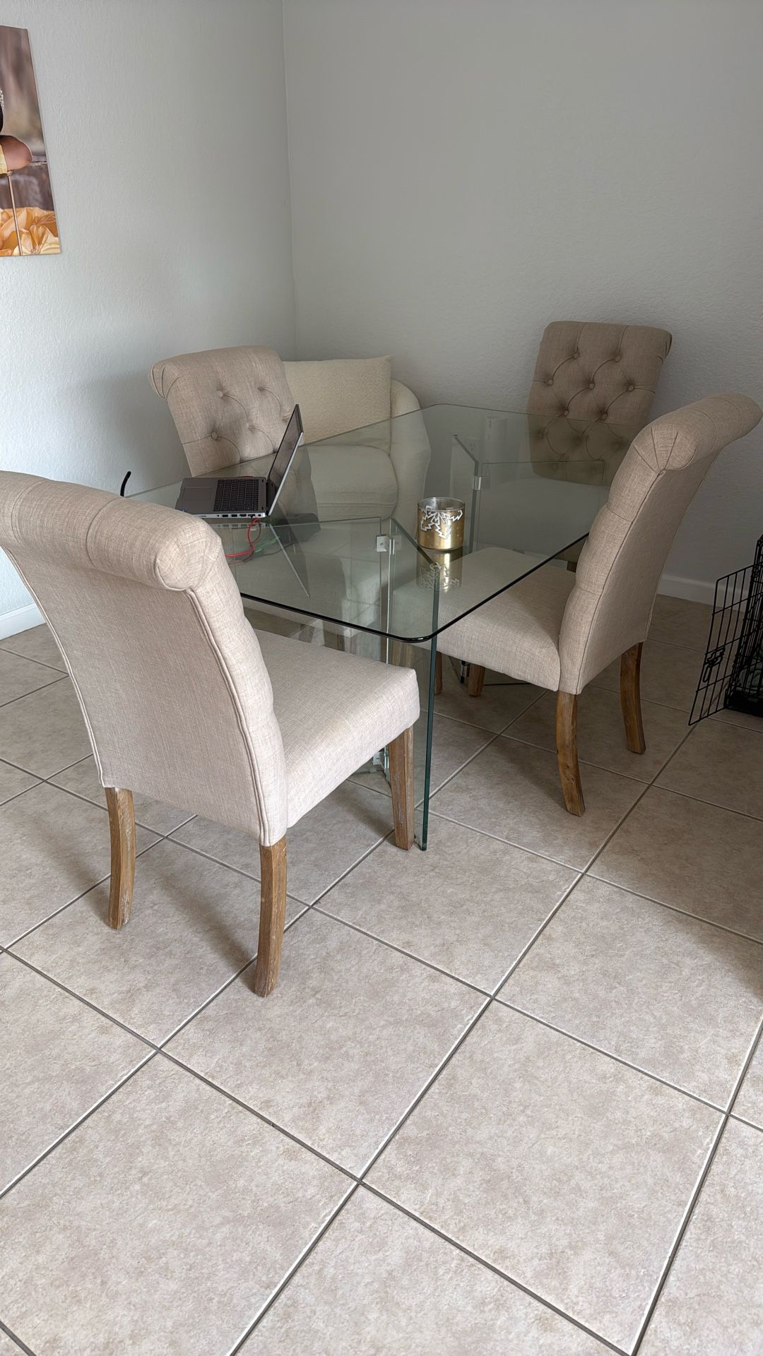 Barely used glass dining table and chairs!