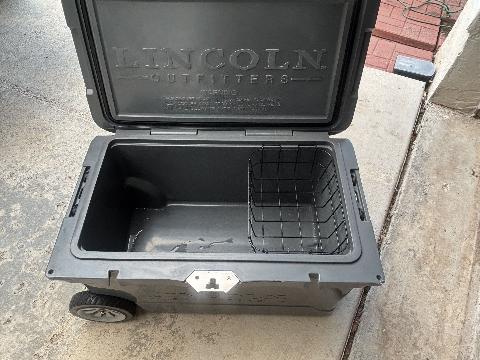 Some small cosmetic scratches on the outside but functions like new, latches and wheels perfect condition, yeti imitation cooler 65 with wheels!!!