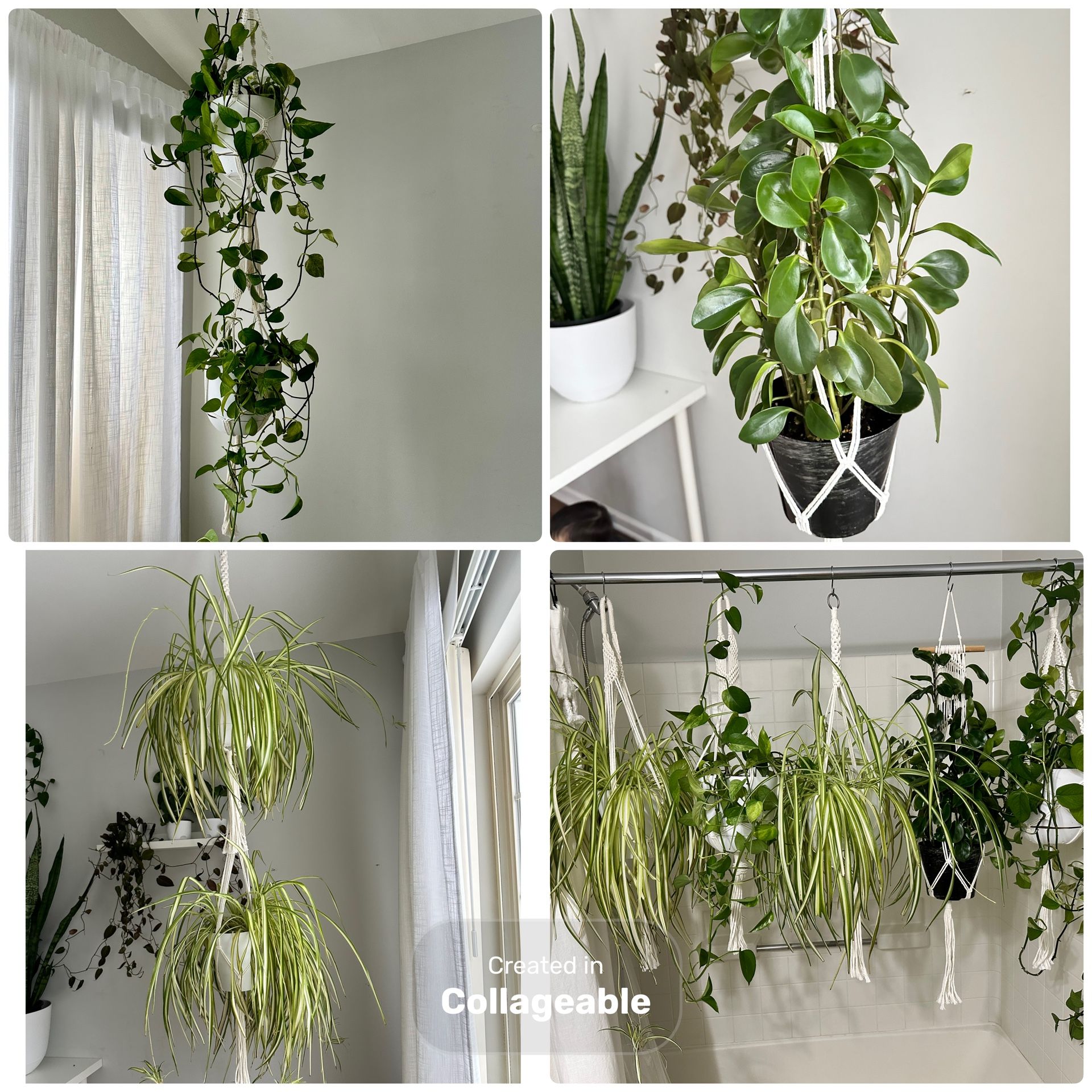 “Full hanging plant collection – includes all plants, pots, and macramé hangers. Healthy, mature plants(spider plant, pothos, peperomia). Perfect for instant home jungle aesthetic. Selling as a bundle only.”