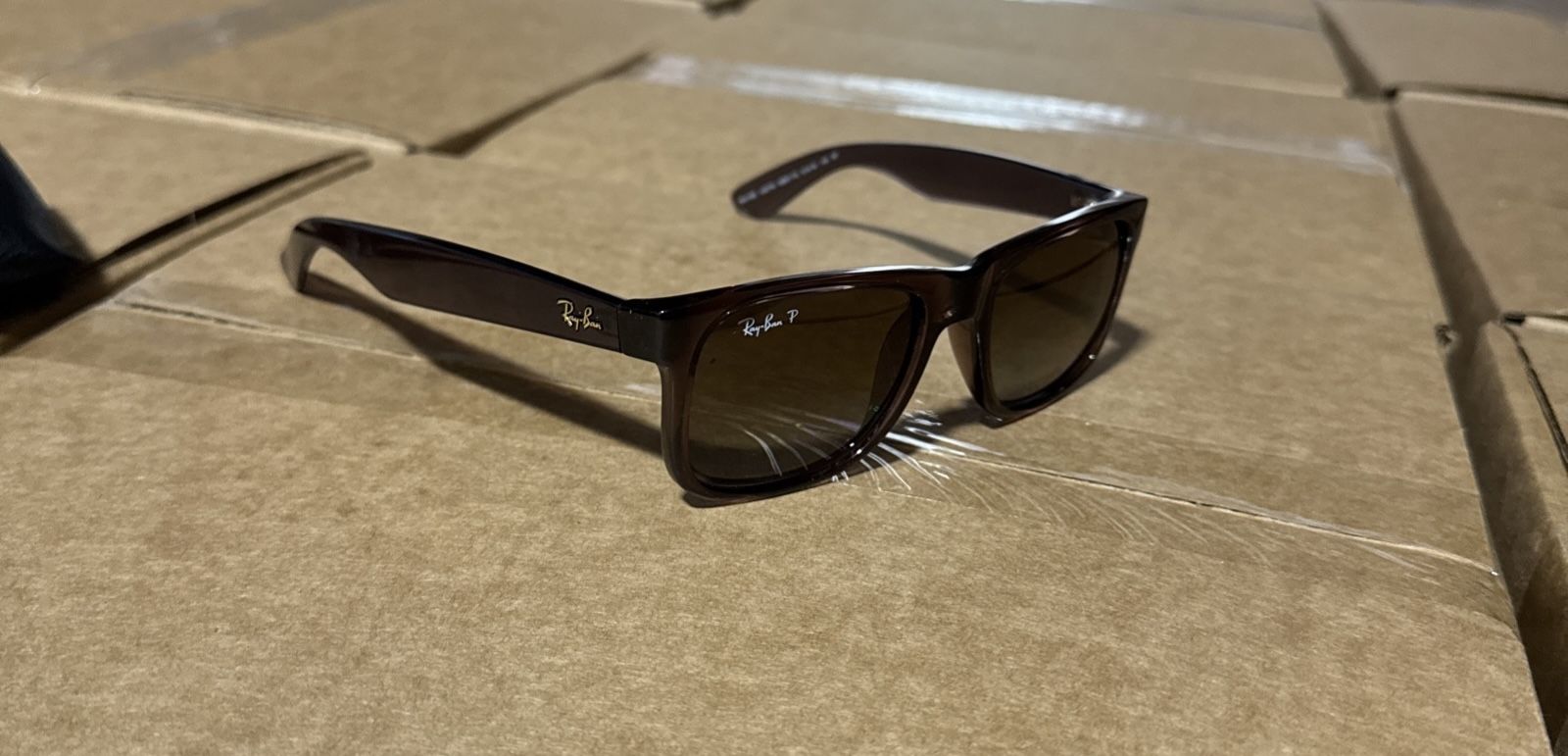 Almost never used just how photos show , comes with case and cleaner The Ray-Ban RB4165 JUSTIN Polarized Justin Sunglasses in Brown are a classic and stylish accessory for men. Featuring a gradient brown frame and polarized polycarbonate lenses, these sunglasses offer both fashion and function. The plastic frame material ensures durability, while the iconic Ray-Ban style adds a touch of sophistication to any outfit. Perfect for adding a stylish touch to your wardrobe, these sunglasses are a timeless choice for those looking to make a statement.