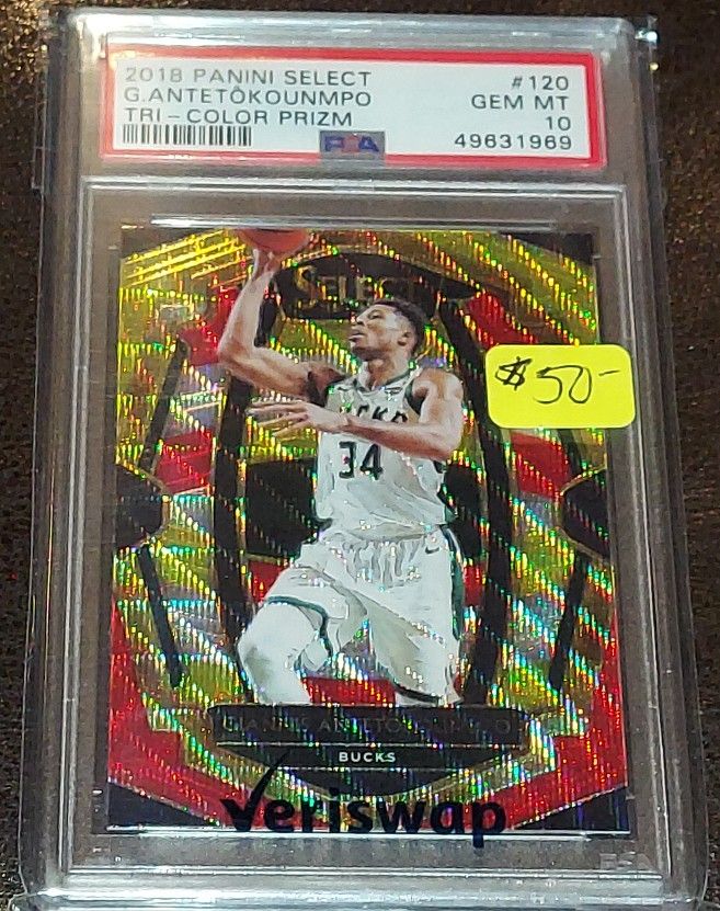 2018 SELECT GIANNIS ANTETOKOUNMPO TRI COLOR PRIZM CARD #120. CARD IS GRADED PSA 10 GEM MINT!!! PLEASE MESSAGE ME WITH ANY QUESTIONS. THANK YOU .