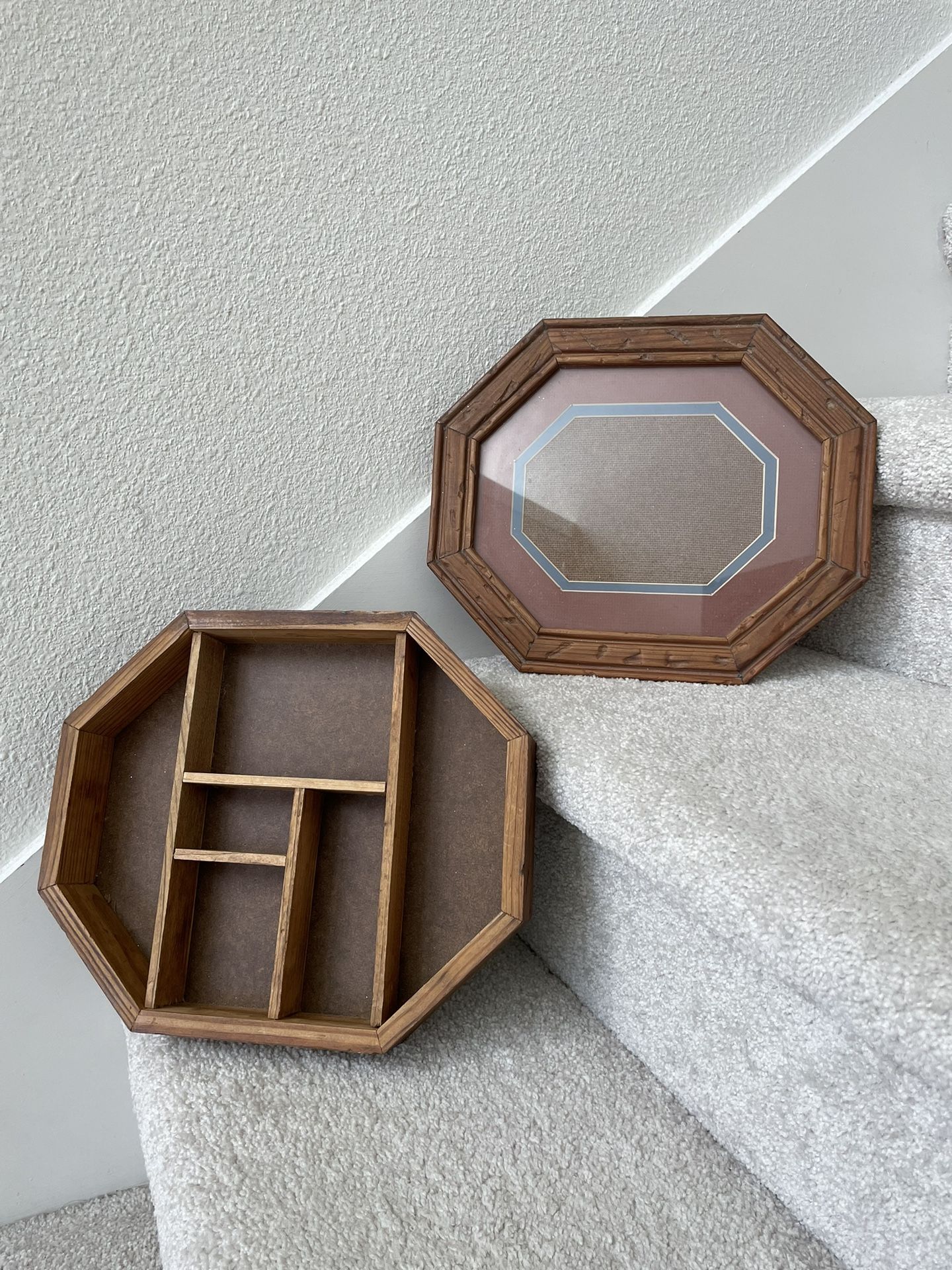 Vintage Wood Curio Knick Knack Display Case Shadow Octagonal Box