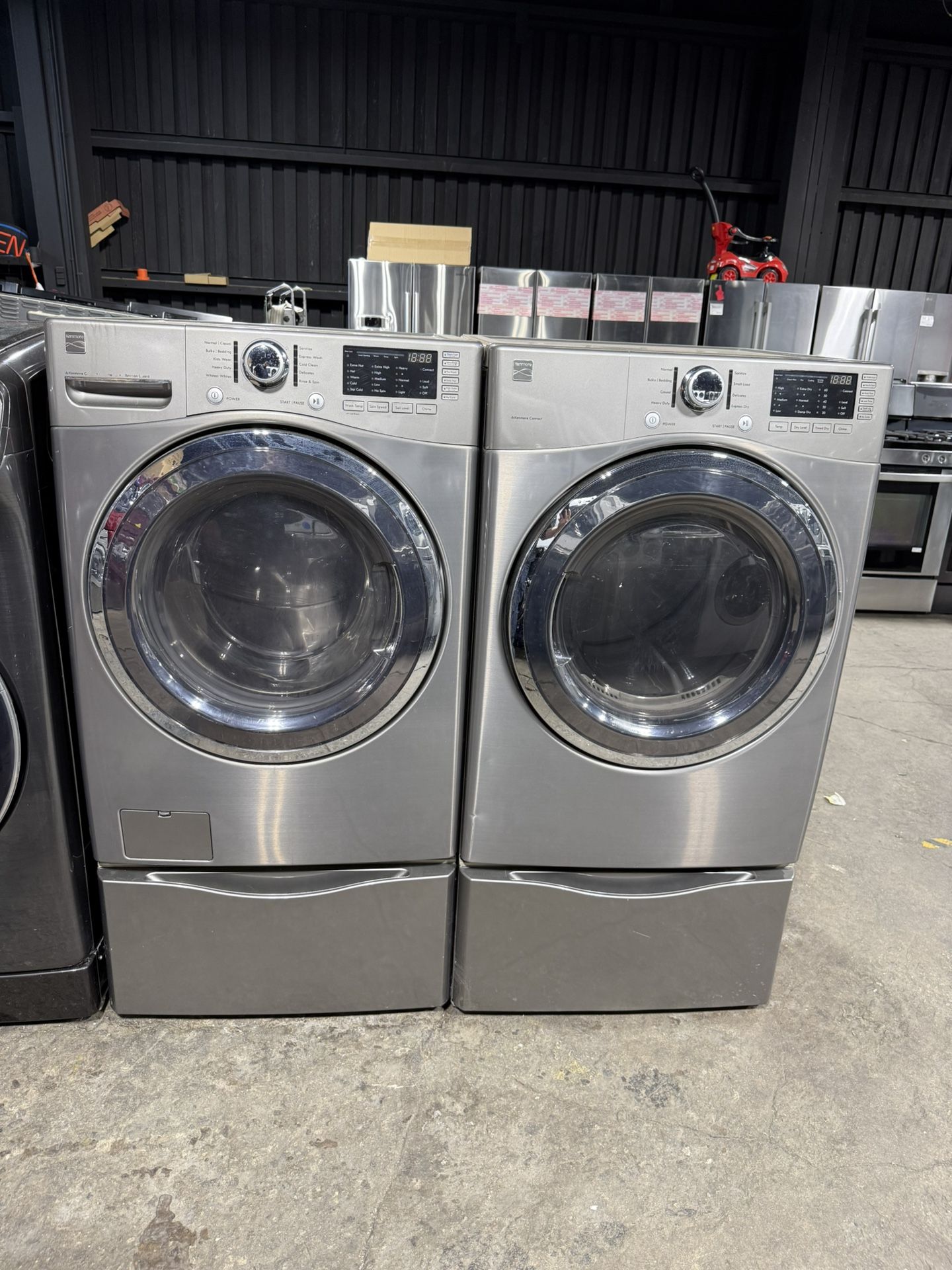 Kenmore stainless steel front load washer and gas dryer set 🔥JGS APPLIANCES 🔥 We are located at 5348 vineland av north Hollywood We do finance with Snap in all our new appliances we accept Credit card 💳 !!!!!!Financing available !!!!!! 60. DAYS WARRANTY Delivery available 100% functional Clean and great condition We have new and used appliances Washer and dryer Refrigerator Top and bottom French door 4 door Stove Diswasher Microwave !!!! Delivery available !!!! (same day delivery if possible) Pay upon arrival Payment Cash Zelle credit card 💳 Thank you so much for your time