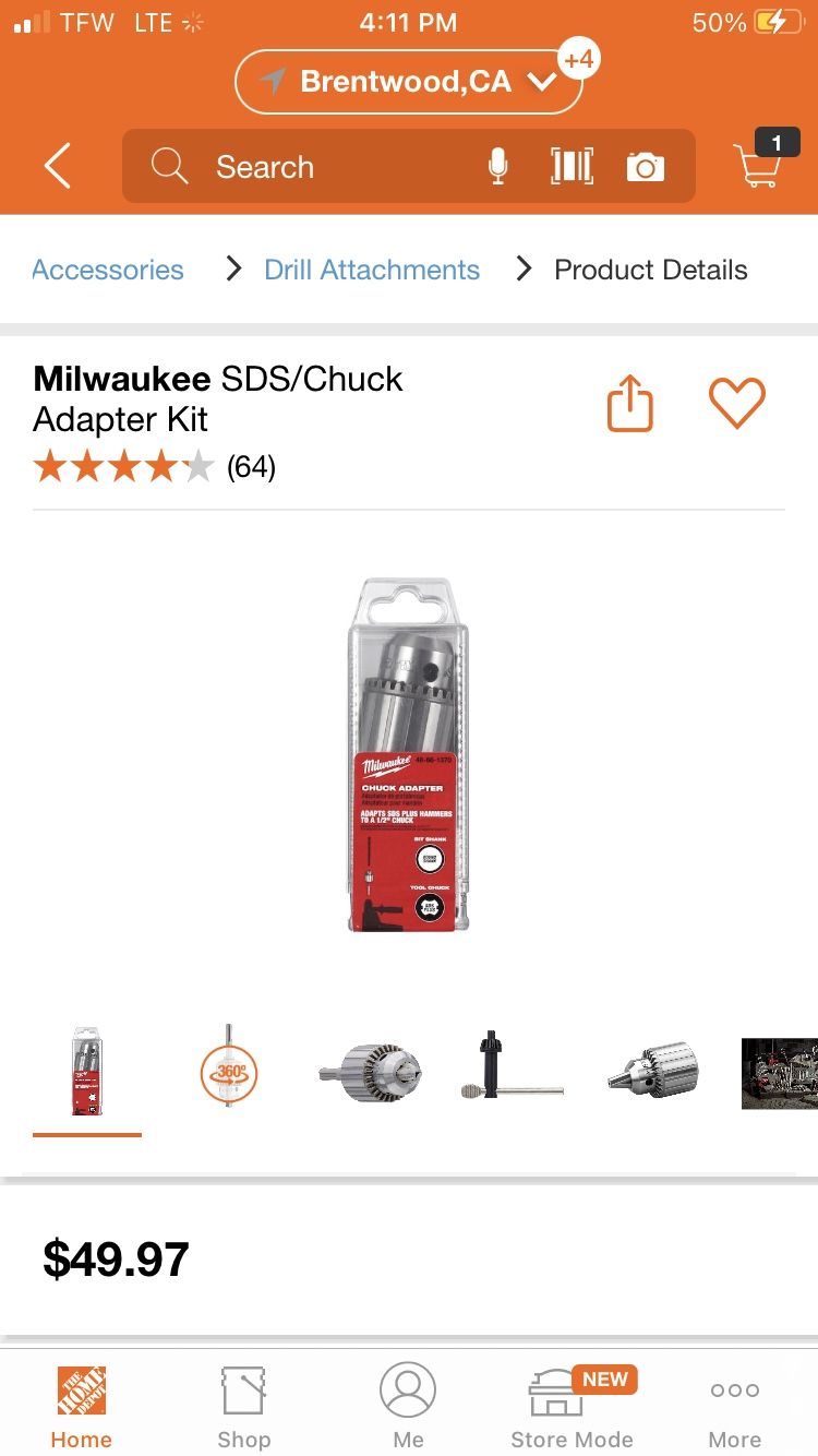 Milwaukee specialty adapter SDS/Chuck Adapter Kit Sds to 1/2” chuck Brand new in package Brentwood pick up