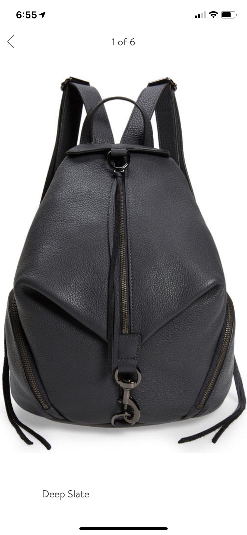 Rebecca Minkoff backpack Leather Like new condition Color: slate gray Comes with dust bag and extra tassel 13"H x 10"W x 6"D