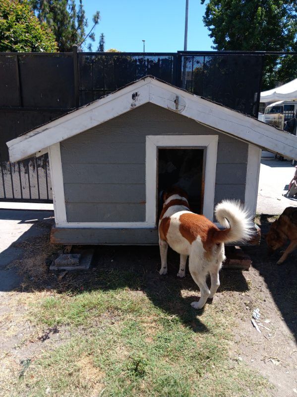 I have this dog House for sale I am asking 400$ still in good condition you are welcome to stop by and take a look at it. Tengo esta casa para perro disponible todavia en buenas condiciones a 400$ precio fijo puede venir a verla si gusta.