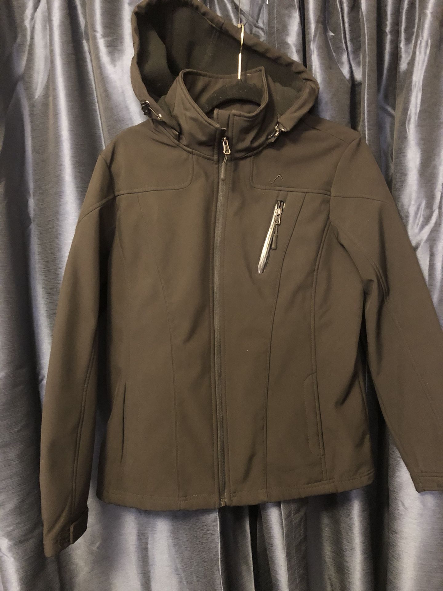 Vertical '9 women's soft shell tailored jacket size xl like new condition This water and wind proof jacket will bring style to any outdoor event it is beautifully cut and tailored with multiple zipper pockets and a removable hood