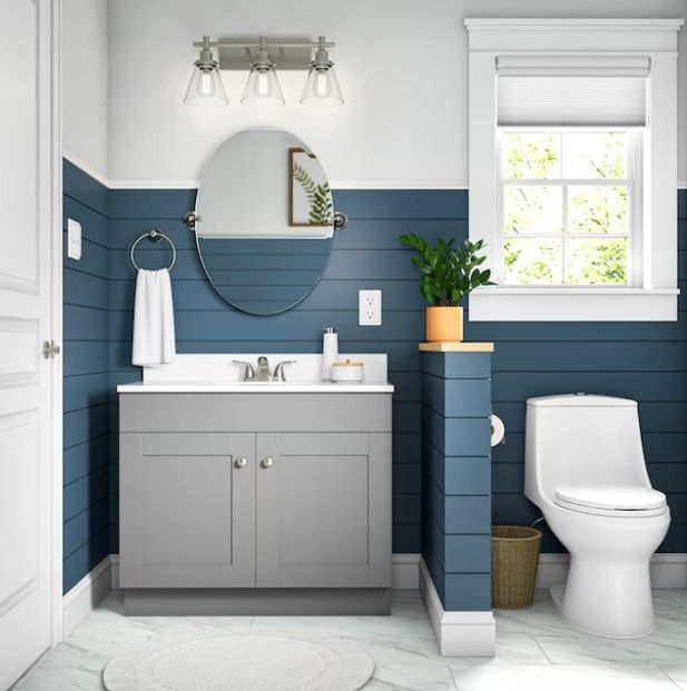 Project Source is the practical choice for style and affordability, offering dependable and functional bathroom vanities. This bathroom vanity collection delivers straightforward style and reliable quality--designed to get the job done while allowing you to upgrade your bathroom with confidence and ease. Choose Project Source vanities, exclusively at Lowe’s. Built for daily use, this Light Gray bathroom vanity from the Dover collection offers a simple, reliable way to refresh your space. The soft white cultured marble vanity top is pre-drilled for a 4-in centerset faucet and includes an integrated oval sink that’s easy to clean (faucet not included) Provides practical storage with a 2-door under-sink cabinet to help keep your bathroom organized. Full-overlay recessed-panel doors are accented by brushed nickel door pulls. With dimensions of 36.5-in W x 18.63-in D x 35.38-in H, this bathroom vanity with single-sink top fits well in 3/4 or full baths. Crafted with a mixed wood construction and comes fully assembled. 6-way adjustable door hinge provides easy alignment after installation Includes an integrated 2.39-in H backsplash.
