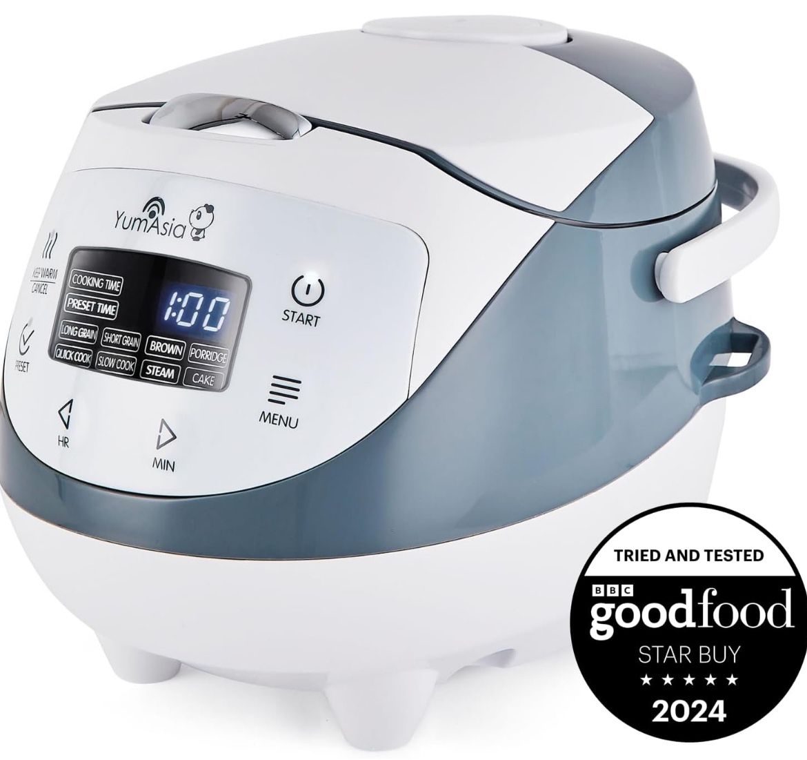 Brand Yum Asia Capacity 0.63 Liters Product Dimensions 13.2"D x 8.9"W x 8.3"H Power Source Corded Electric Product Care Instructions Wipe with Damp Cloth Color White and Grey PERFECT RICE AT THE TOUCH OF A BUTTON - White rice/long grain, short grain/sushi and brown rice settings with quick cook. 7 cooking phases ensure the best taste, texture and aroma automatically ADVANCED FUZZY LOGIC (AI) RICE COOKER TECHNOLOGY - digitally controlled 7 phased 3D heating surround technology with tailored useful add on options including steam, porridge, slow cook, cake baking settings. 24 hour preset timer and keep warm features. 10 minute countdown for rice functions HIGH QUALITY 5-LAYER 2mm THICK NINJA CERAMIC COATED INNER BOWL - durable, healthy with embedded rice levels. Includes instruction manual, steaming basket, rice measuring cup, rice spatula and soup ladle MODERN BRIGHT LED DISPLAY with Korean designed 'Smart Button' control panel in an amazingly kawaii (cute) white and grey accented body! IDEAL FOR SMALL KITCHENS INDIVIDUALS OR COUPLES BY 'YUM ASIA' THE RICE COOKER EXPERTS - 3.5 cup capacity of uncooked rice (1-3 people), 0.63 litres, 120V, 60Hz with detachable US power cord TWO YEAR WARRANTY included as standard from the manufacturer