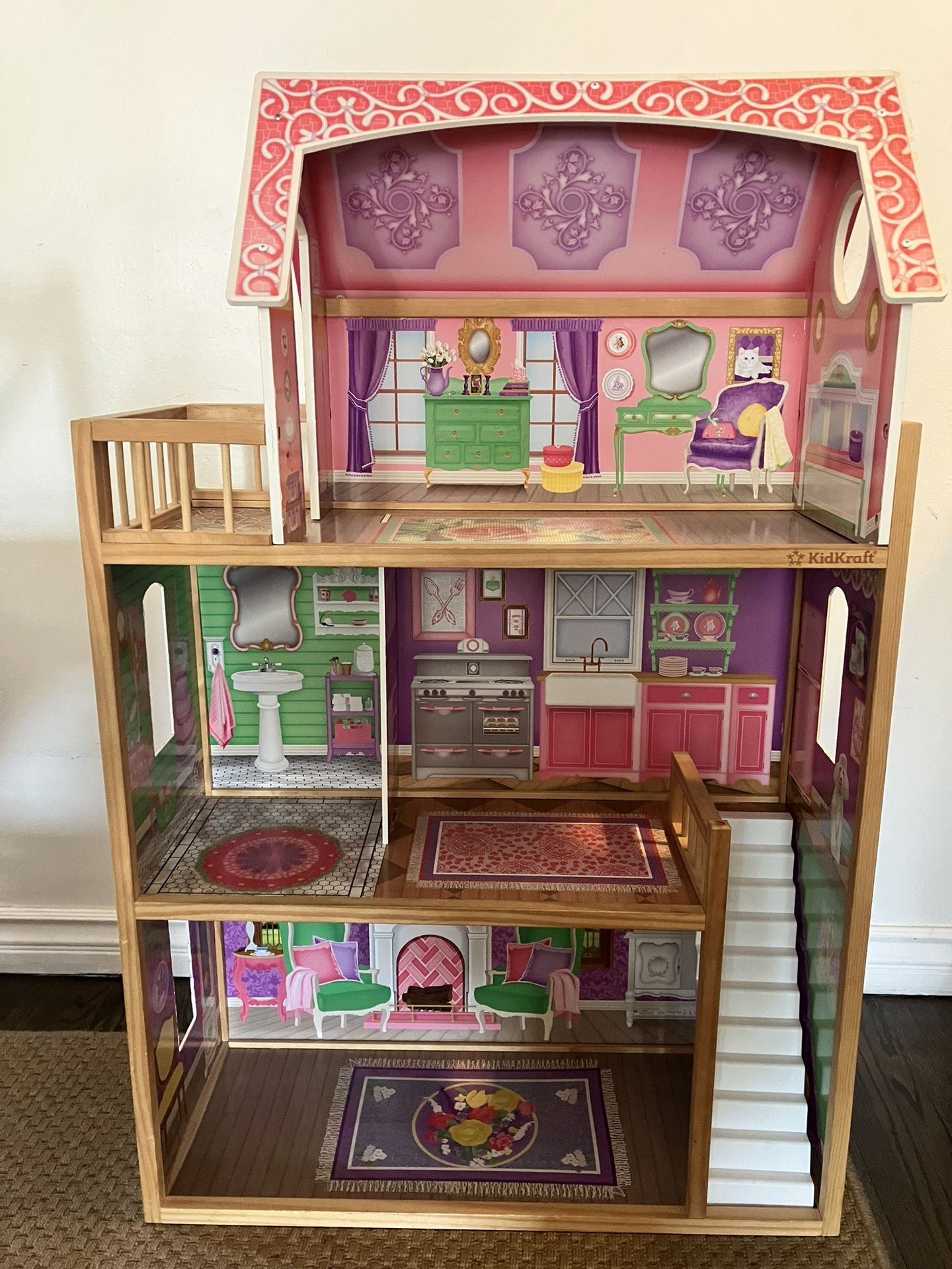Doll house and Barbies with few furnitures and accessories, used. Price is for all.