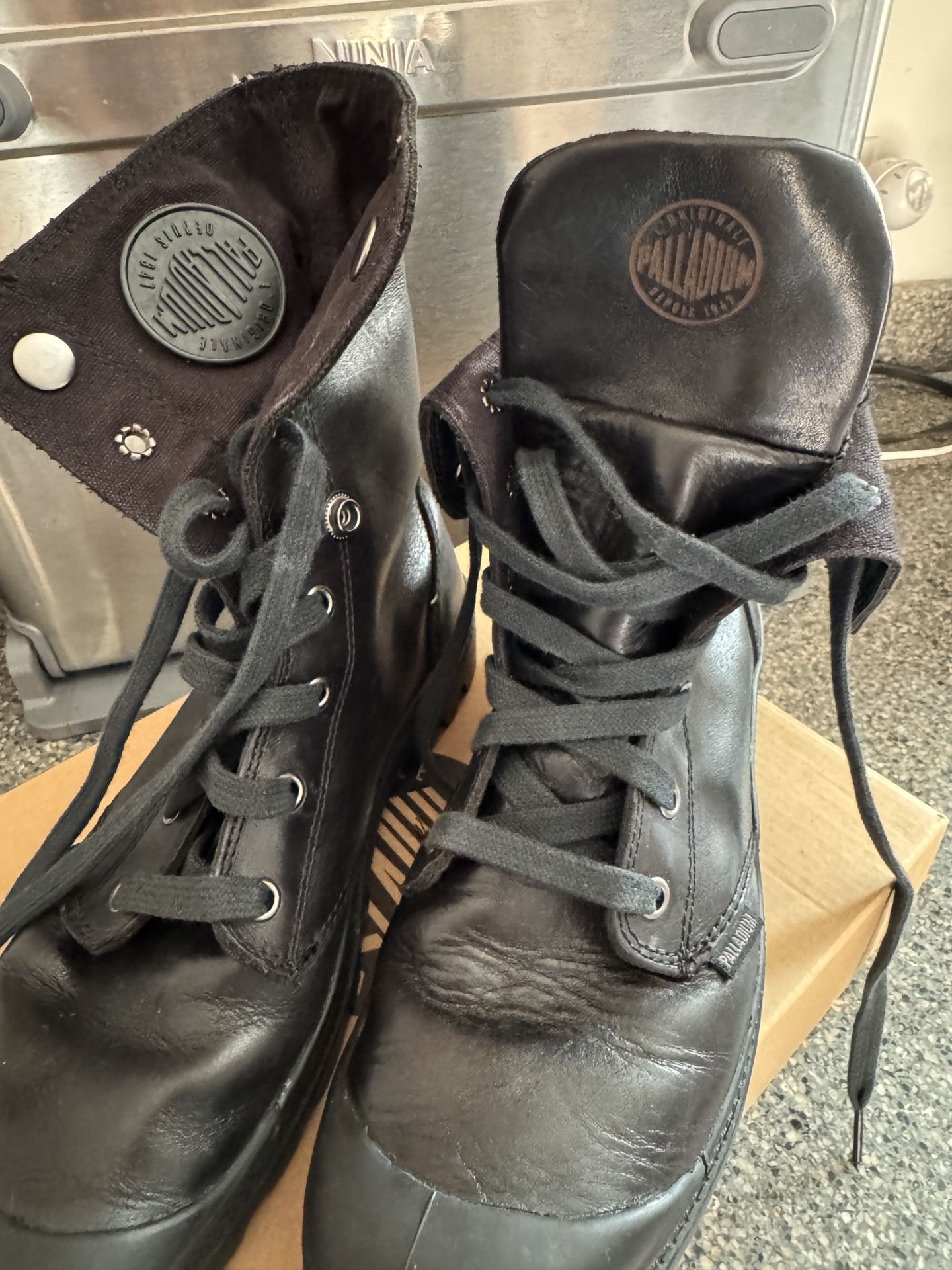 Palladium Genuine Leather Military Waterproof Winter Boots Brand New Women’s size 8 Can be worn up, or folded down
