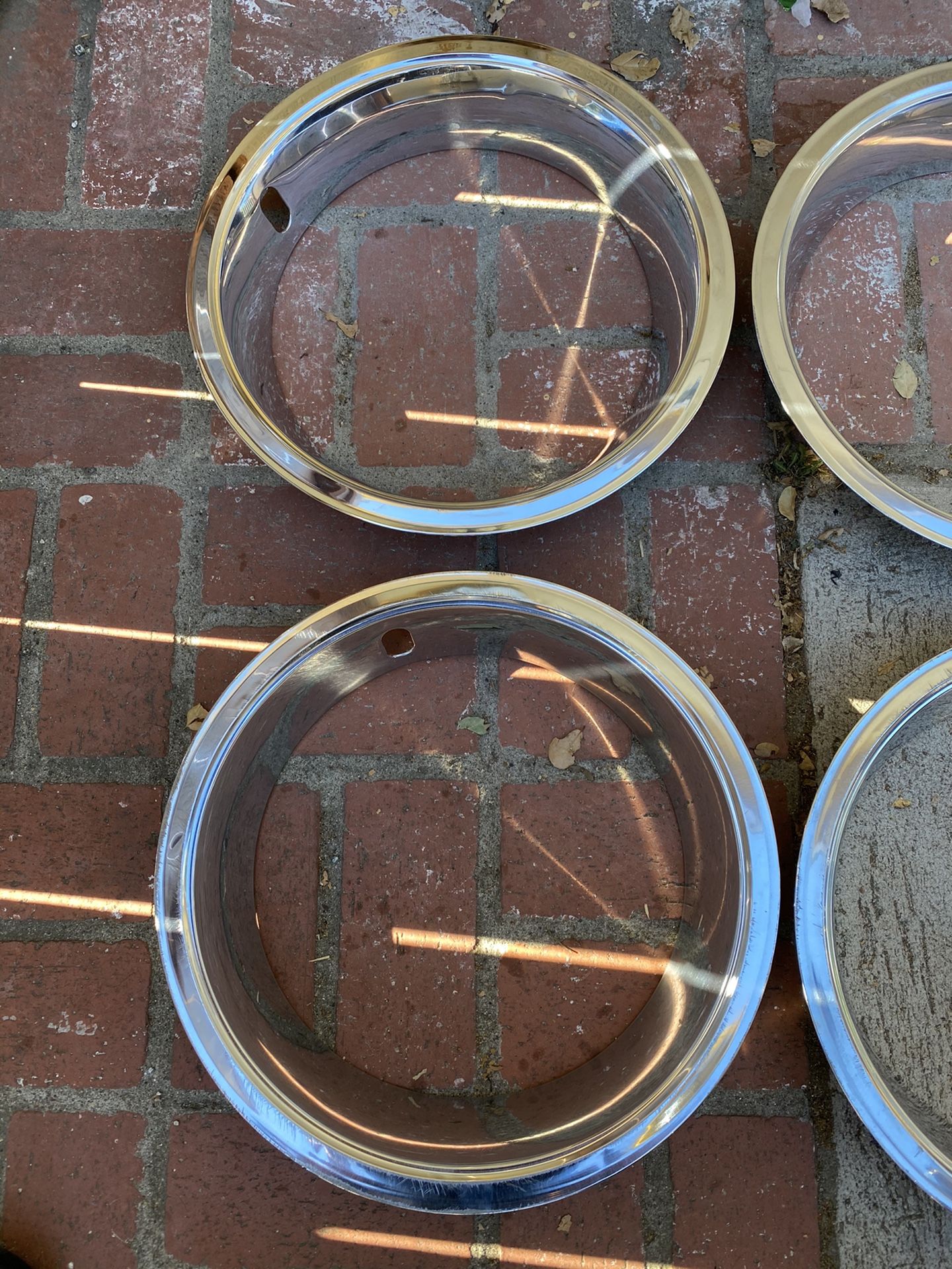 This is a complete set of original beauty rings. They are made for a Buick Regal or Olds Cutlass 14in rally wheels.