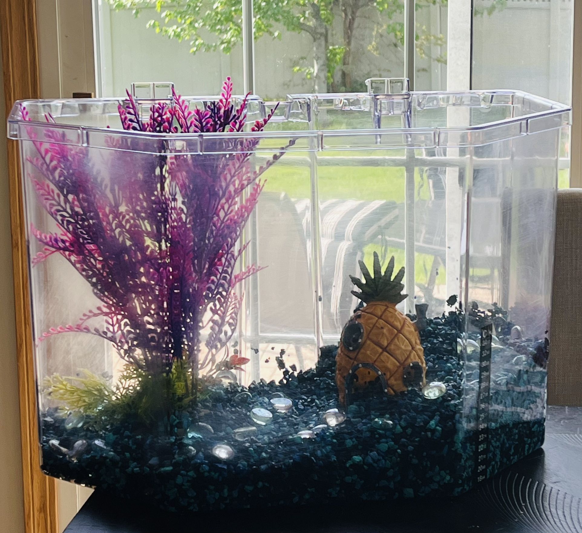 Black top with multi-colors lighting inside. Comes with all decorations. Spacious fish tank. Max 8-10 fishes.