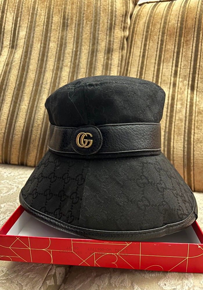 Black Gucci bucket hat with leather trim