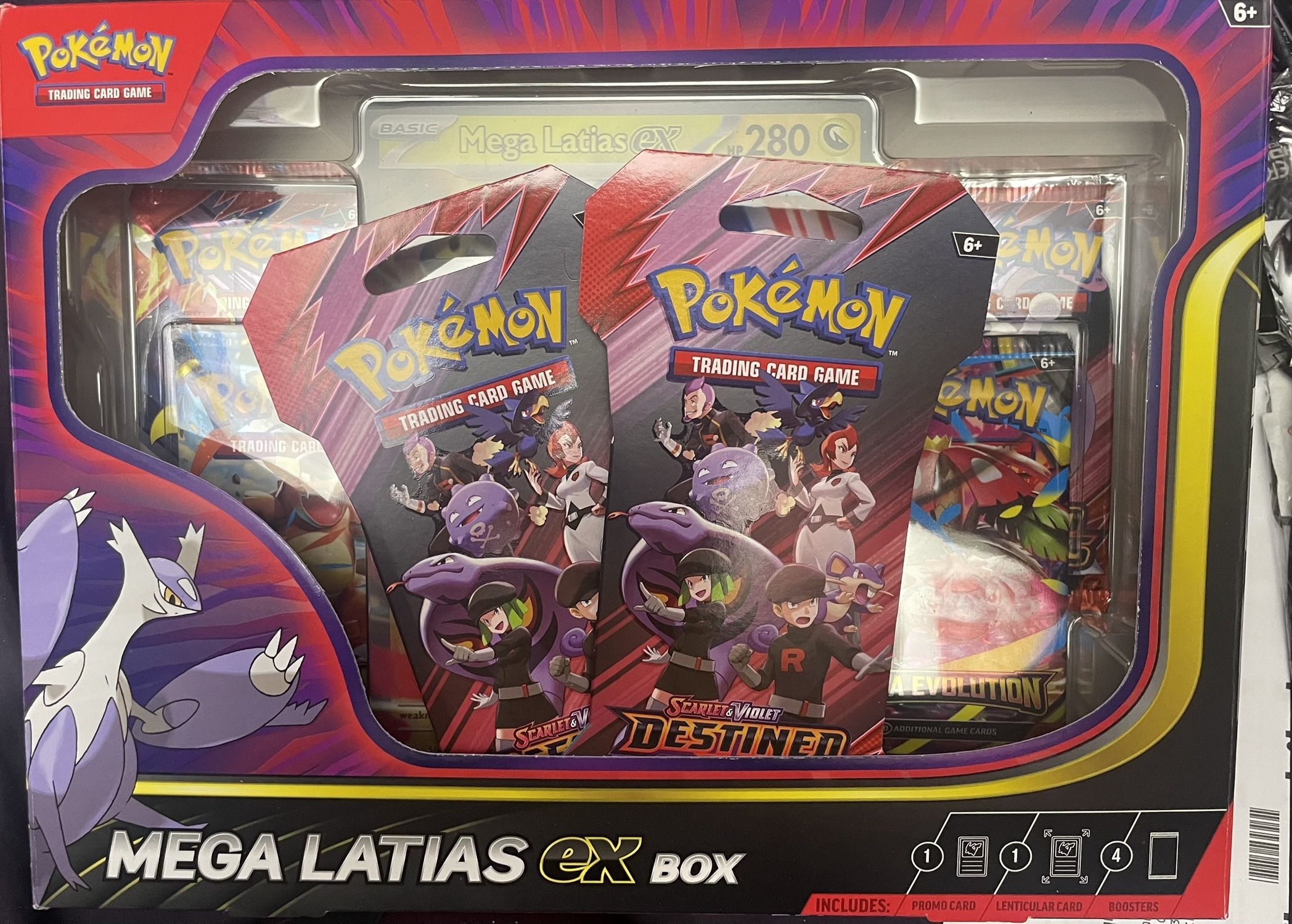 Brand new. Latias Ex collection box and two extra sleeved booster packs of destined rivals