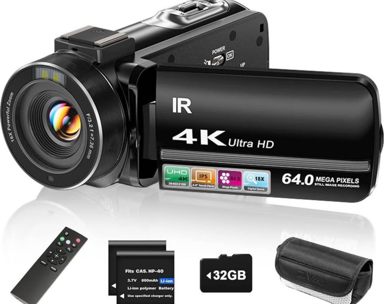 Cámara de video, videocámara 4K 56MP Grabadora de video digital 18X Zoom 3 "Rotación de 270° Pantalla táctil IR Visión Nocturna, Cámara Wifi Vlogging para YouTube 64GB Tarjeta Anti-Shake Control