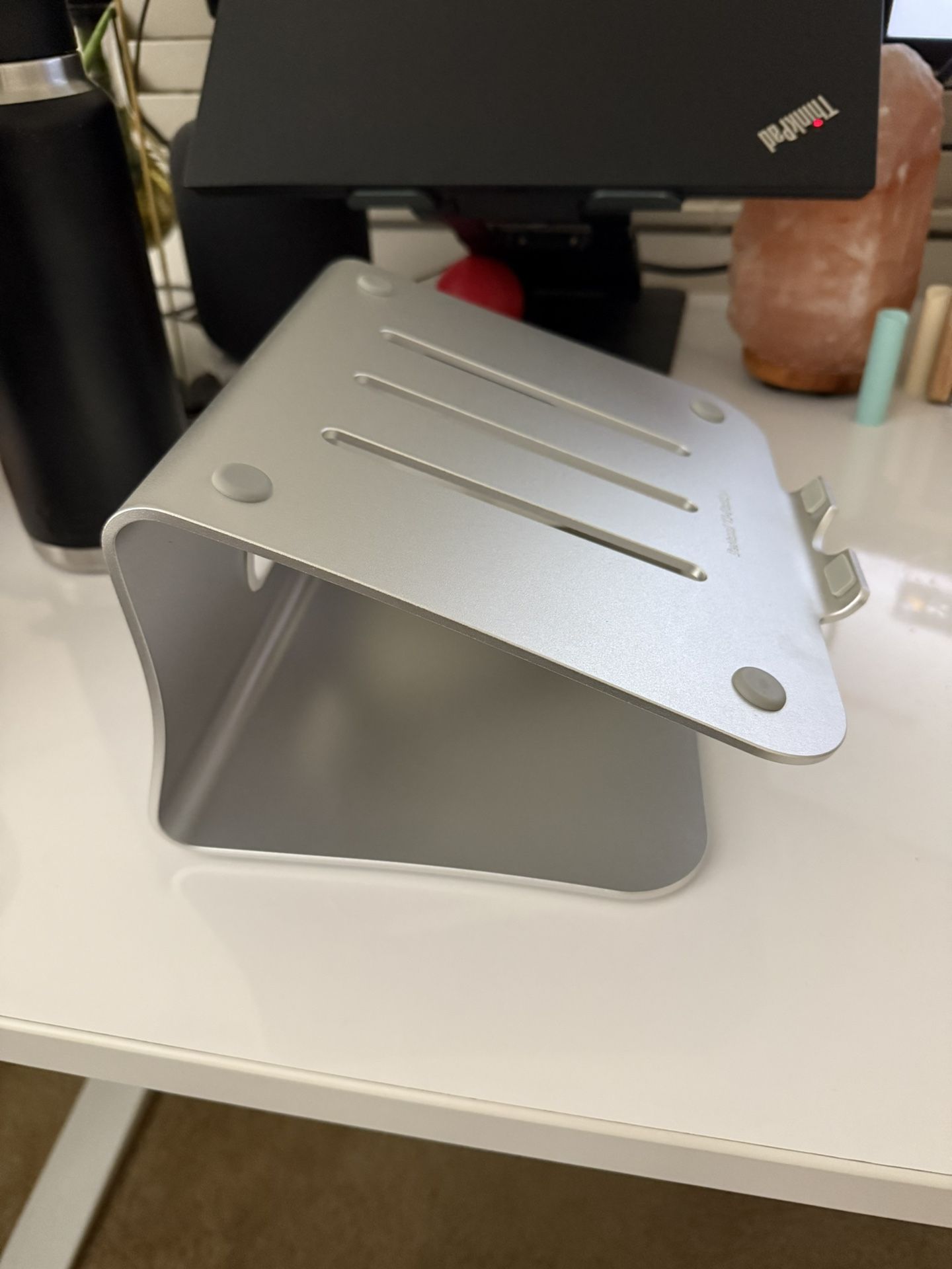 Aluminum laptop stand designed for MacBooks. Same color as the silver MacBooks. Purchased on Amazon for $40. Asking for $20. Pick up in Irvine near Woodbury town center.