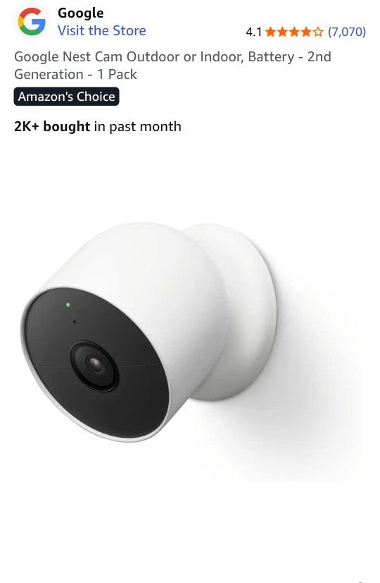 Google Nest camera, battery version (can also be wired). New $179, just doesn't work with my ADT system in my new house