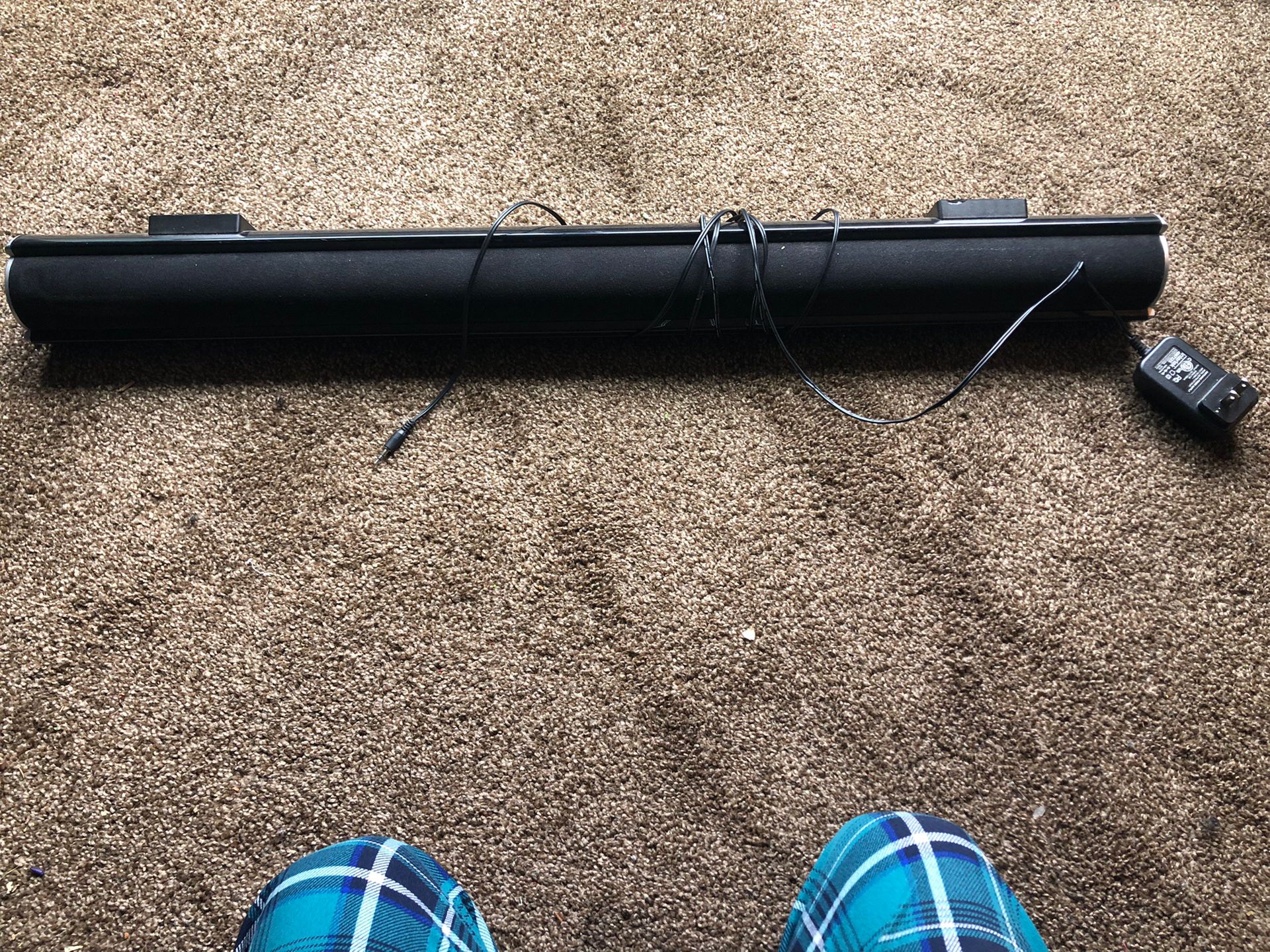 Sound bar works, comes with wires needed to power in and connect
