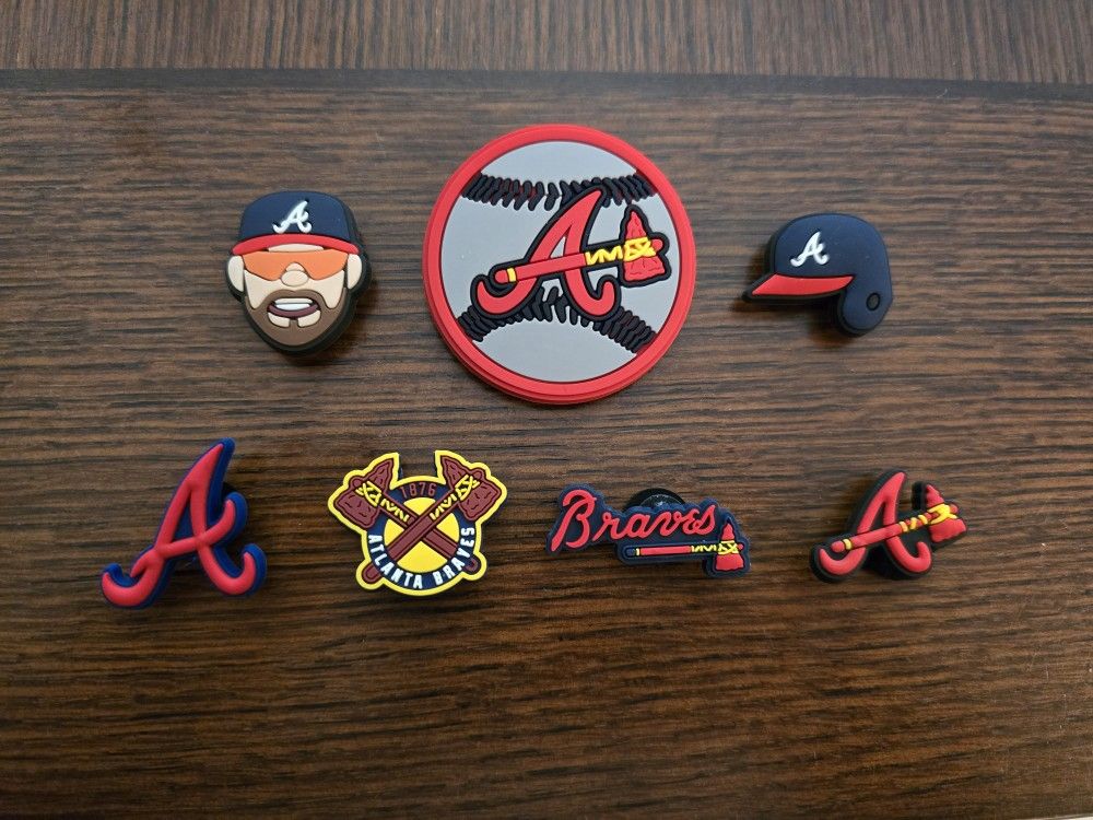 Lot of 7 Atlanta Braves Shoe Charms Charms are for Croc Shoes. Not Croc brand but functions the same I do ship, click buy now on listing to purchase and I will ship them to you