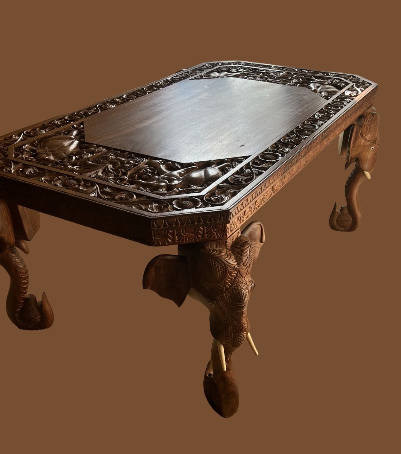 Mid-20th Century Anglo-Indian Carved Elephant Table