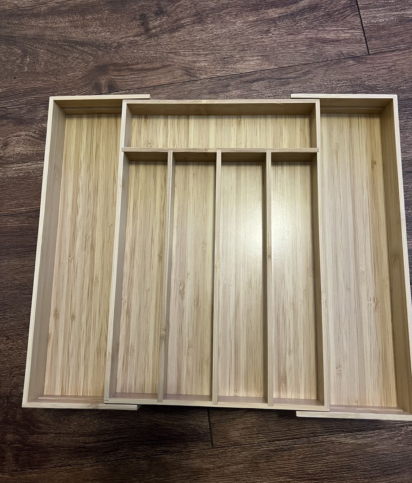 Brand new bamboo silverware organizer.