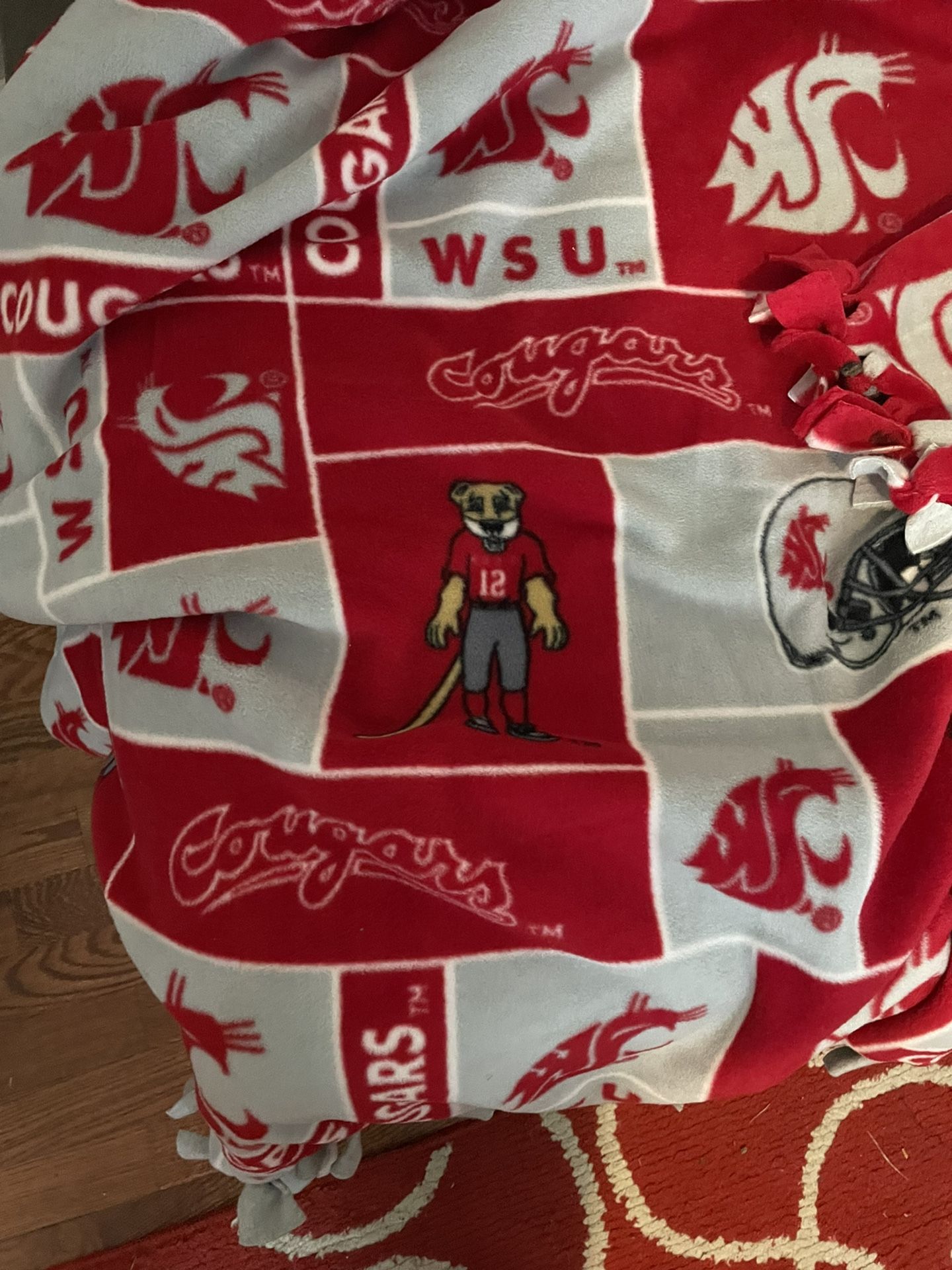 Never used, home sewn. Cougars throw blanket 5ft by 4ft with matching scarf $30
