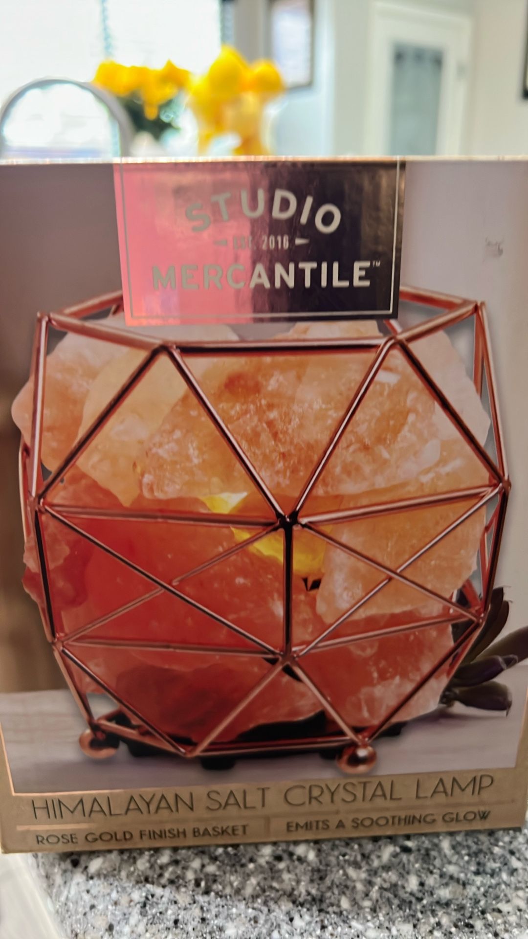 Studio Mercantile salt Cristal lamp emits a soothing glow color Rose Gold finish basket