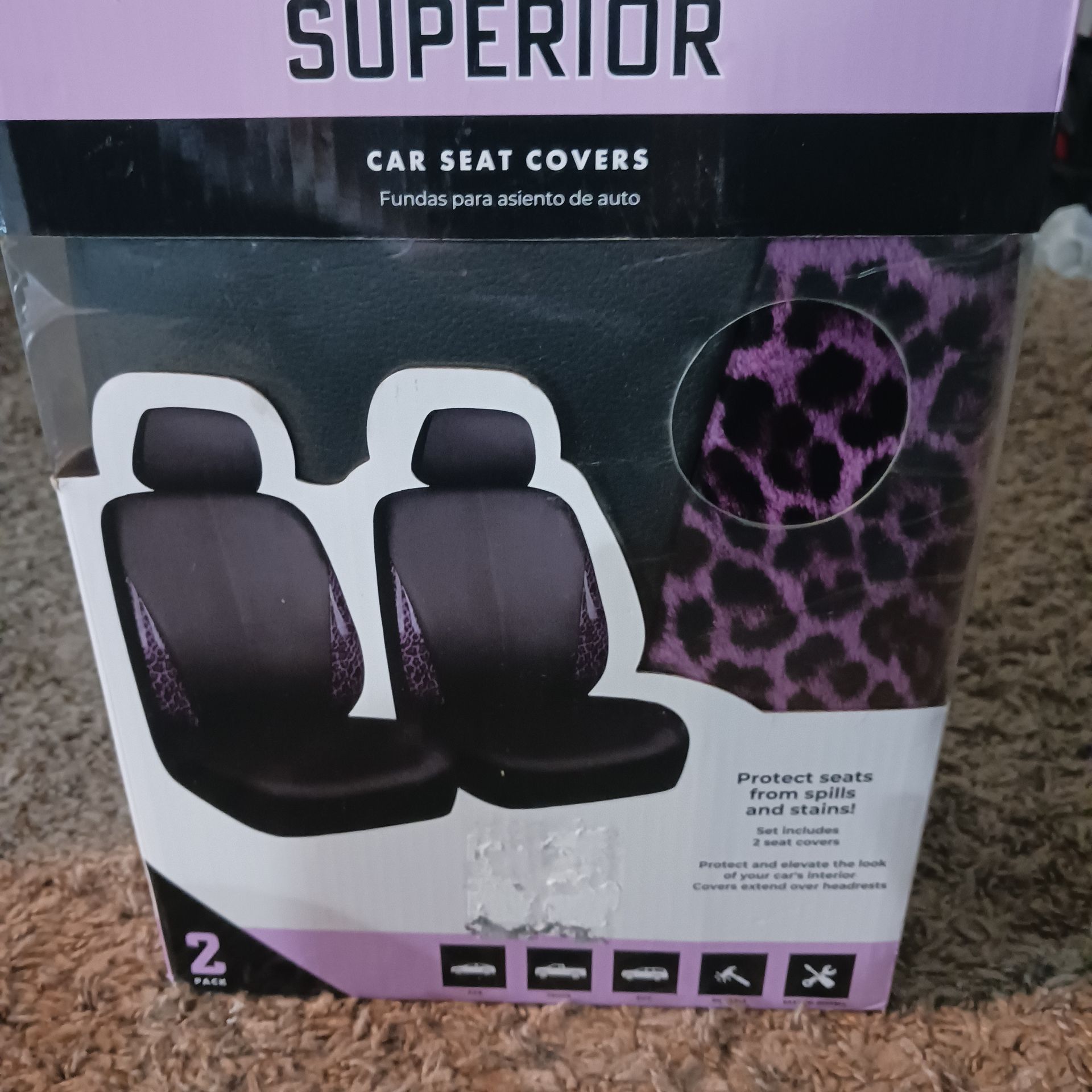 2 seat covers with headrest covers brand new didn't fit my car asking $30 cash must pick up Broadway and apache buckeye az color is black with purple leopard print