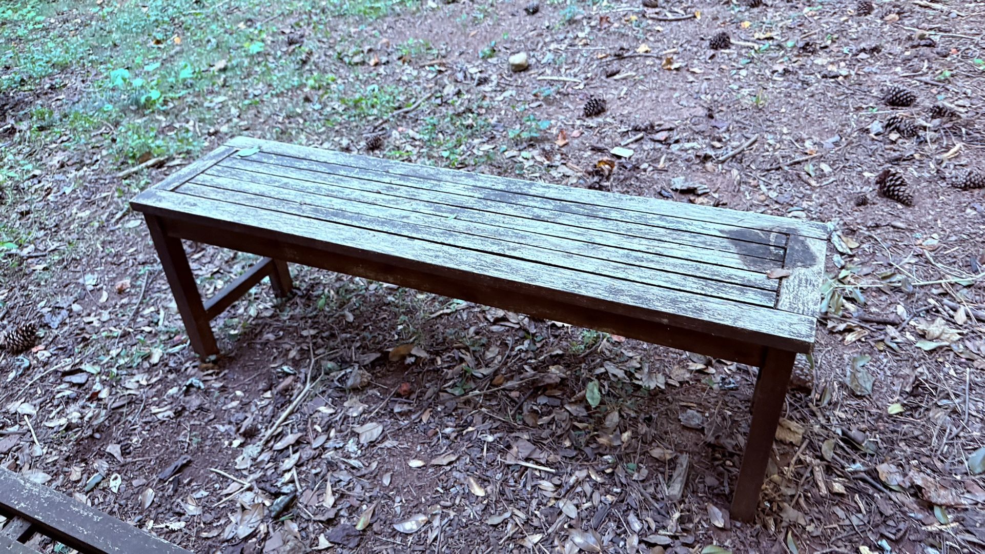 Teakwood Bench Will not reply to if it's still available if it's still up it's still available. No holds Cash Only first come first serve Please Reply with time to meet at the park below. I will reply yes or new time. Meet at the Park next to 108 Waters Lake Ln Woodstock GA 30188