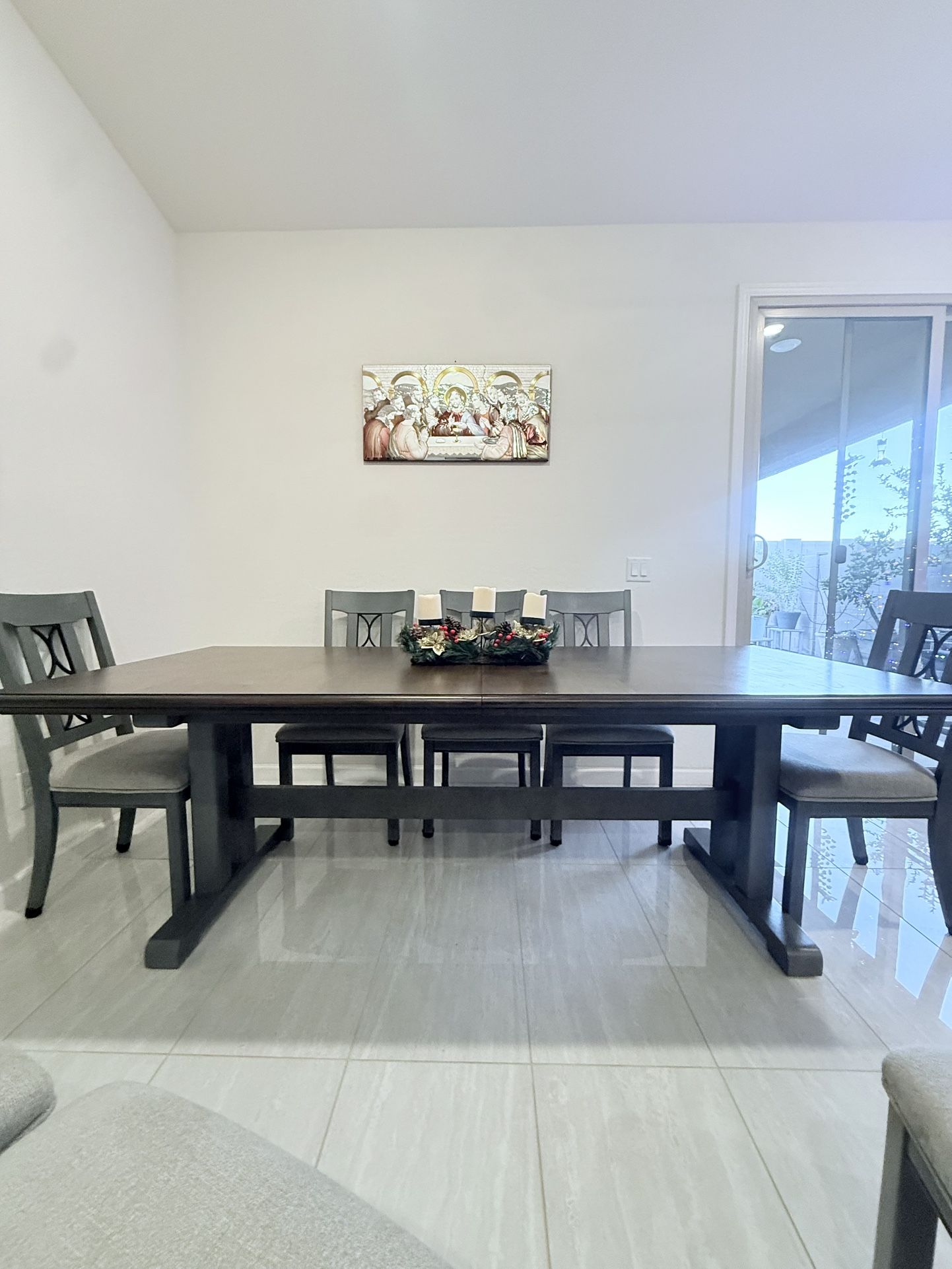 Beautiful dining table with eight chairs, heavy duty and sturdy. Table was hardly used it. It’s in great condition. No scratches no stains. Home is pet free, and smoke free . Table is 90 inches long 40 inches wide